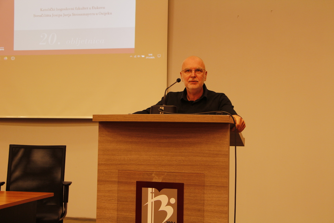 Već u uvodnom dijelu, dekan izv. prof. dr. sc. Ivica Pažin podsjetio je na svečanu akademiju održanu prethodne večeri, istaknuvši kako Fakultet, uza svu institucionalnu dimenziju, uvijek iznova svjedoči vlastitu transcendenciju i otvara prostor dijalogu vjere, znanosti i kulture. “Teologija nije samo znanstvena disciplina”, naglasio je, “nego i živo mjesto susreta društva, kulture i politike.” Okupljenima je poželio plodonosan dan, potičući ih na zajedničko razmišljanje upravo u duhu obljetnice.