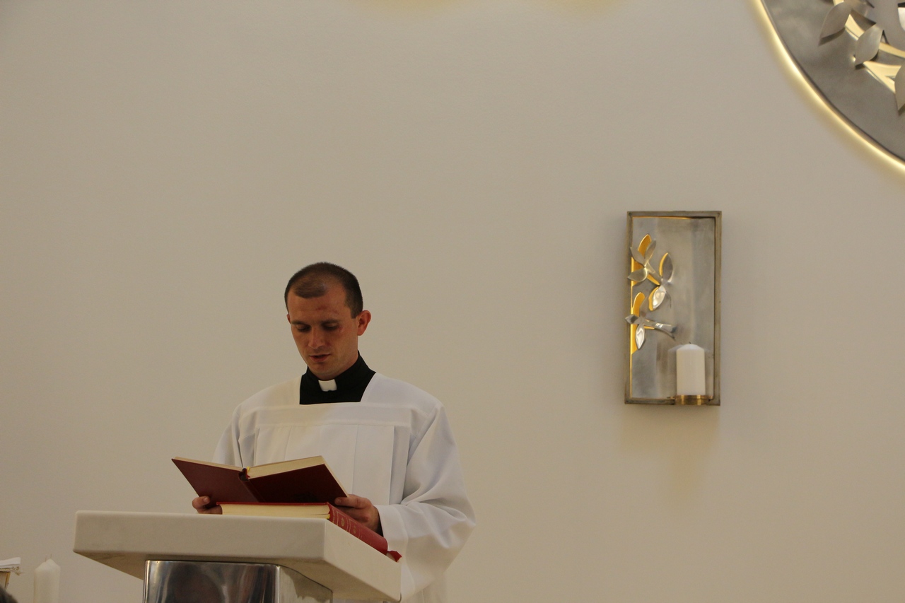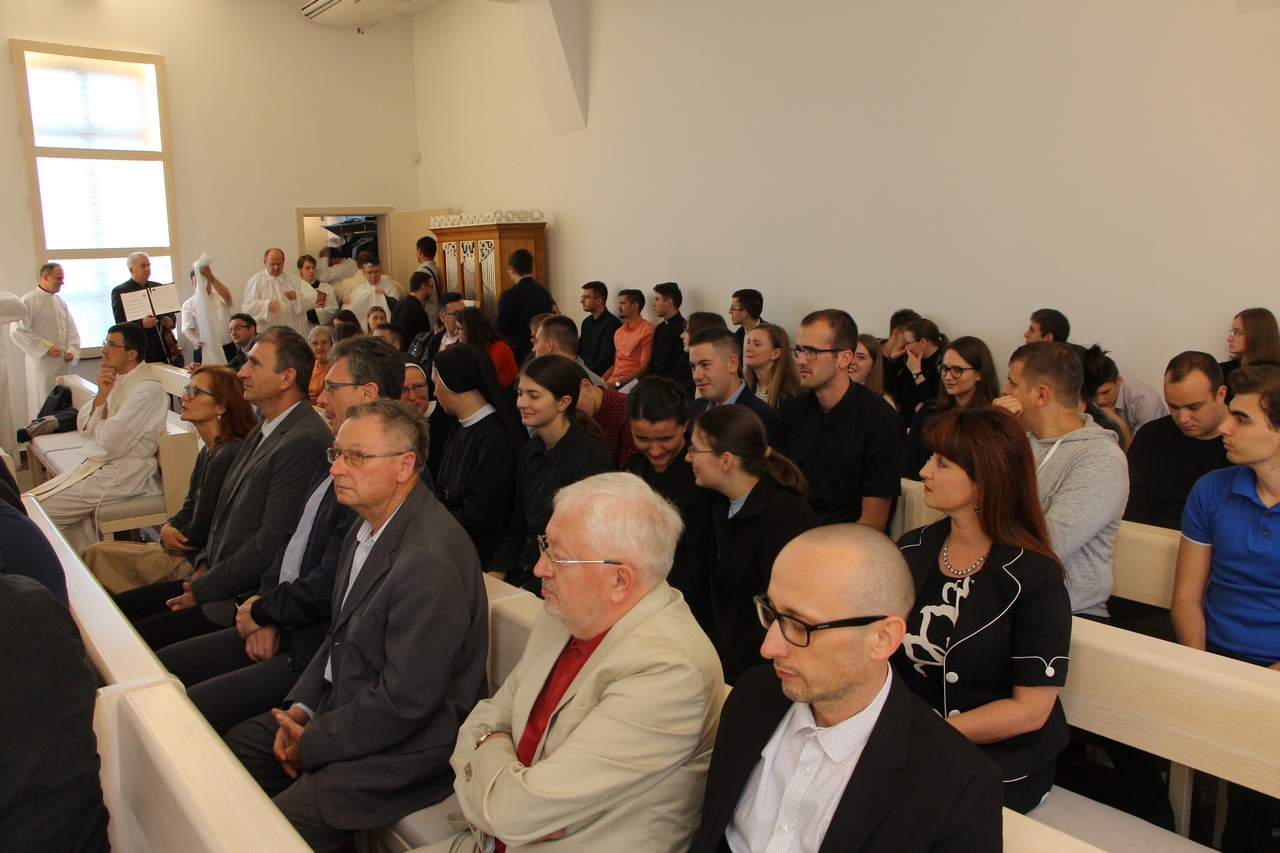 Prvi dio programa pratile su glazbene dionice u izvedbi Krešimira Marmilića na violini i Milana Hibšera na orguljama, koje su inače posebno nabavljene za ovu kapelicu i koje su se po prvi puta mogle čuti u prostoru kapelice. Središnji događaj bilo je euharistijsko slavlje koje je predvodio đakovačko-osječki nadbiskup i veliki kancelar mons. dr. Đuro Hranić koji je blagoslovio kapelicu, te istaknuo da je njezino dovršenje „točka na i” nastojanja oko uređenja „đakovačkoga kampusa“ – kompleksa kojega sačinjava Katolički bogoslovni fakultet, moderno uređeni studentski dom, knjižnica i sada studentska kapelica Marije Majke Crkve.