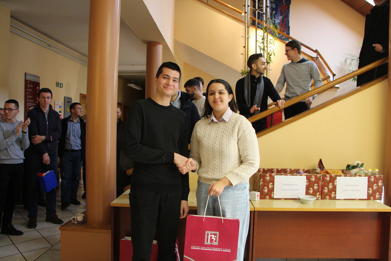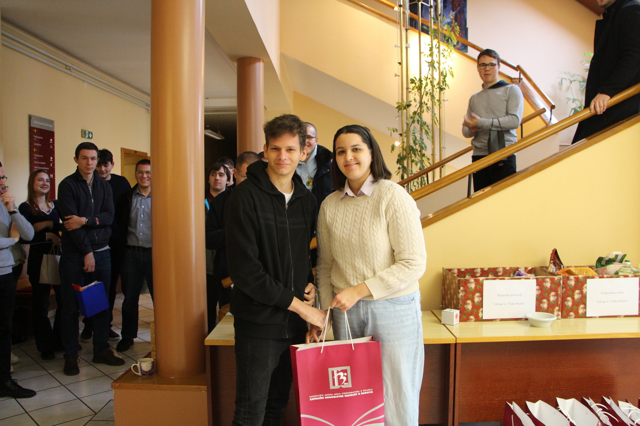 Sudionici su s velikim zanimanjem i uzbuđenjem pratili izvlačenje, pri čemu su među nagradama bila izdanja Biblioteke Diacovensia kao i publikacije naših profesora. Tombola je protekla u ozračju smijeha i veselja, omogućivši svima opušteno i ugodno druženje u blagdanskom duhu. Na samom završetku studenti su se međusobno darivali, budući da je svatko imao zadatak razveseliti svoga „anđela“.