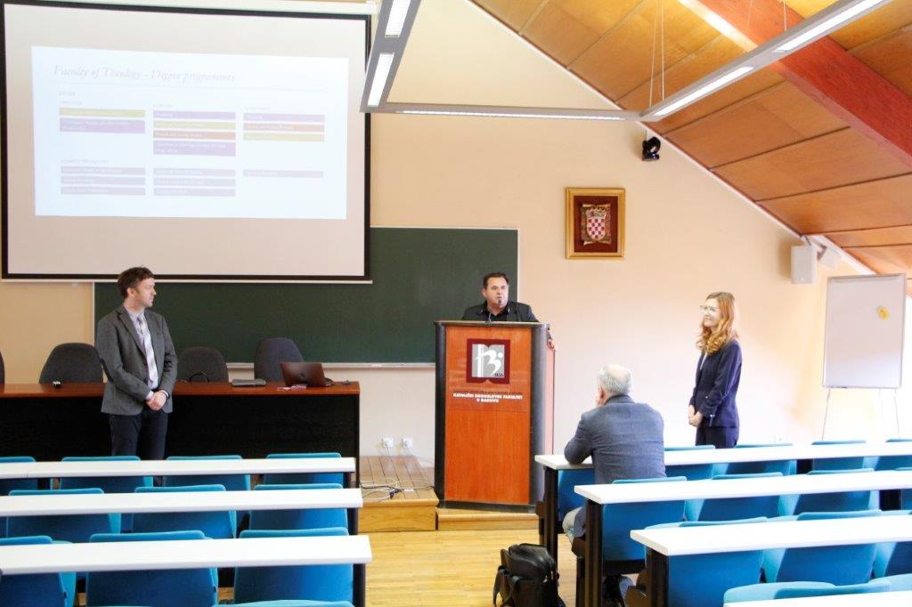Studenti su aktivno sudjelovali postavljajući pitanja vezano uz slovenske primjere uloge, značaja, ugleda i položaja teologa na tržištu rada u Sloveniji te su predstavljene različite socijalne, pedagoške, psiho-terapeutske i karitativne mogućnosti rada i suradnje.