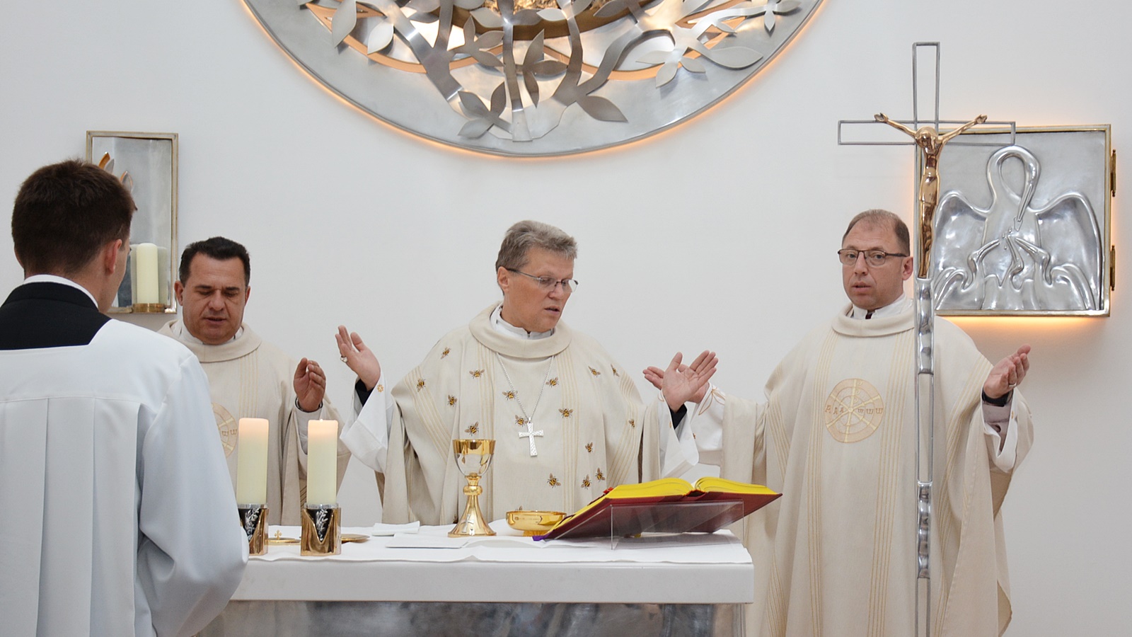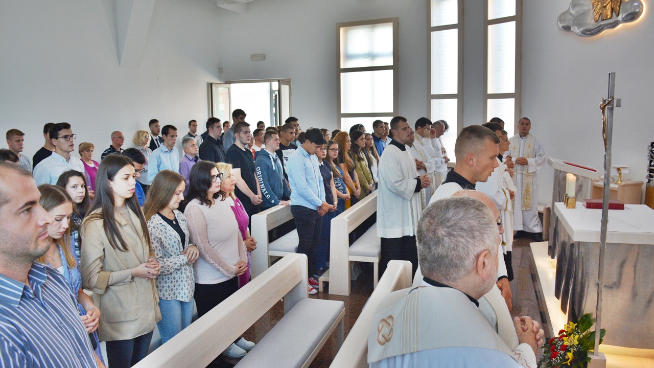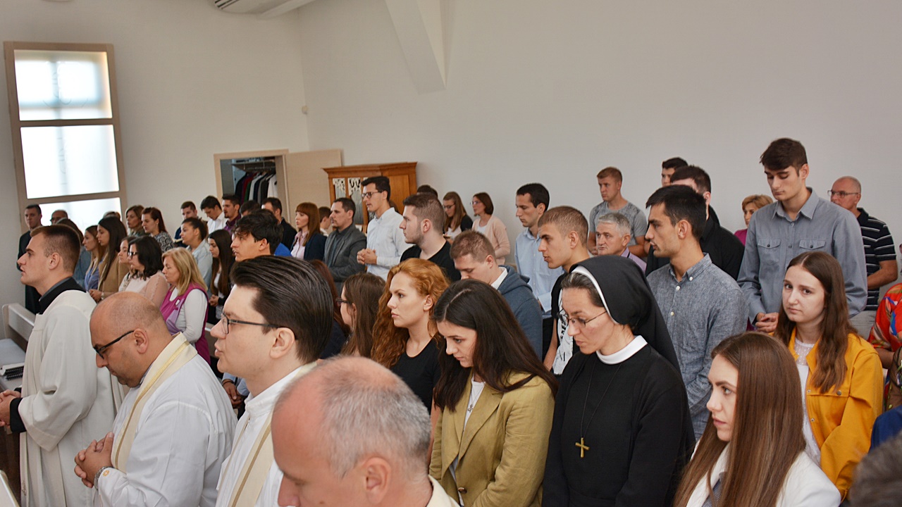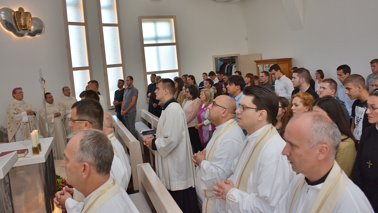 Nakon predavanja profesora Šimića je kapelici Marije Majke Crkve održana sveta misa i zaziv Duha Svetoga za novu akademsku godinu koju je predvodio nadbiskup đakovačko-osječki, mons. dr. sc. Đuro Hranić. Tumačeći Matejevo evanđelje, postavio je ista ona pitanja koja Isus postavlja svojim učenicima: “Što ljudi kažu tko sam ja?” i ” Što vi kažete, tko sam?” Vođen tim pitanjima, nadbiskup je govorio o važnosti poznavanja drugih, o njihovim uvjerenjima i stavovima i na tragu toga je spomenuo pitanje vjeronauka u školama definirajući te sate kao sate odgoja i učenja o ljubavi i toleranciji prema drugima i različitima. Svoju homiliju je završio pitanjem o Isusovu identitetu za svakoga. Tko je Isus za svakog pojedinca, budućeg teologa, ne dajući odgovor, već nas je time uveo u novu akademsku godinu da u njoj nađemo odgovor na to ” A što vi kažete, tko sam ja?”