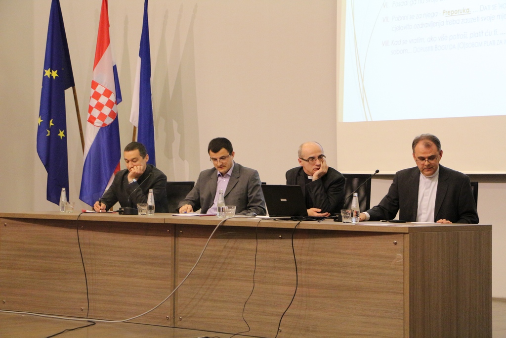 Doc. dr. sc. Grgo Grbešić održao je predavanje pod naslovom “Marija Faustina Kowalska – Apostol Božjeg milosrđa”. Predavanje je bilo koncipirano u četiri dijela: pregled Faustinina života, njen mistični put, njeno poslanje, te razumijevanje milosrđa. Predavač je na poseban način naglasio Božju prisutnost u Faustininom životu, te njezino mračno iskustvo bolesti, muke i patnje Dobila je poslanje u vidu toga da je njezino osobno iskustvo postalo korisno mnogim dušama. Milosrđe se u njoj otkrilo kroz poslanje da pripravi svijet za ponovni Kristov dolazak, a njezina molitva i žrtva postale su put ostvarenja njezin zadaće u Crkvi, zaključio je Grbešić.
