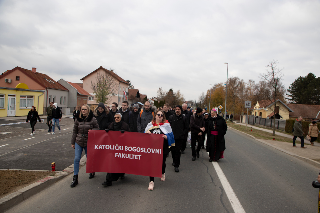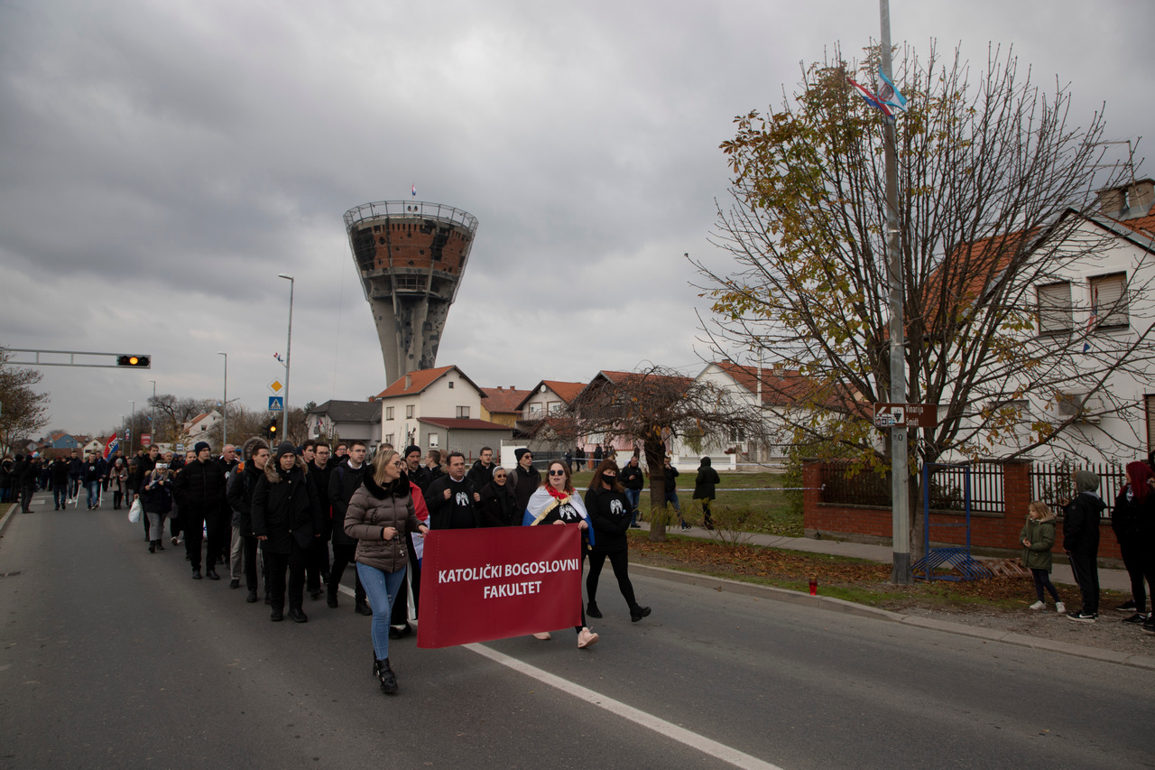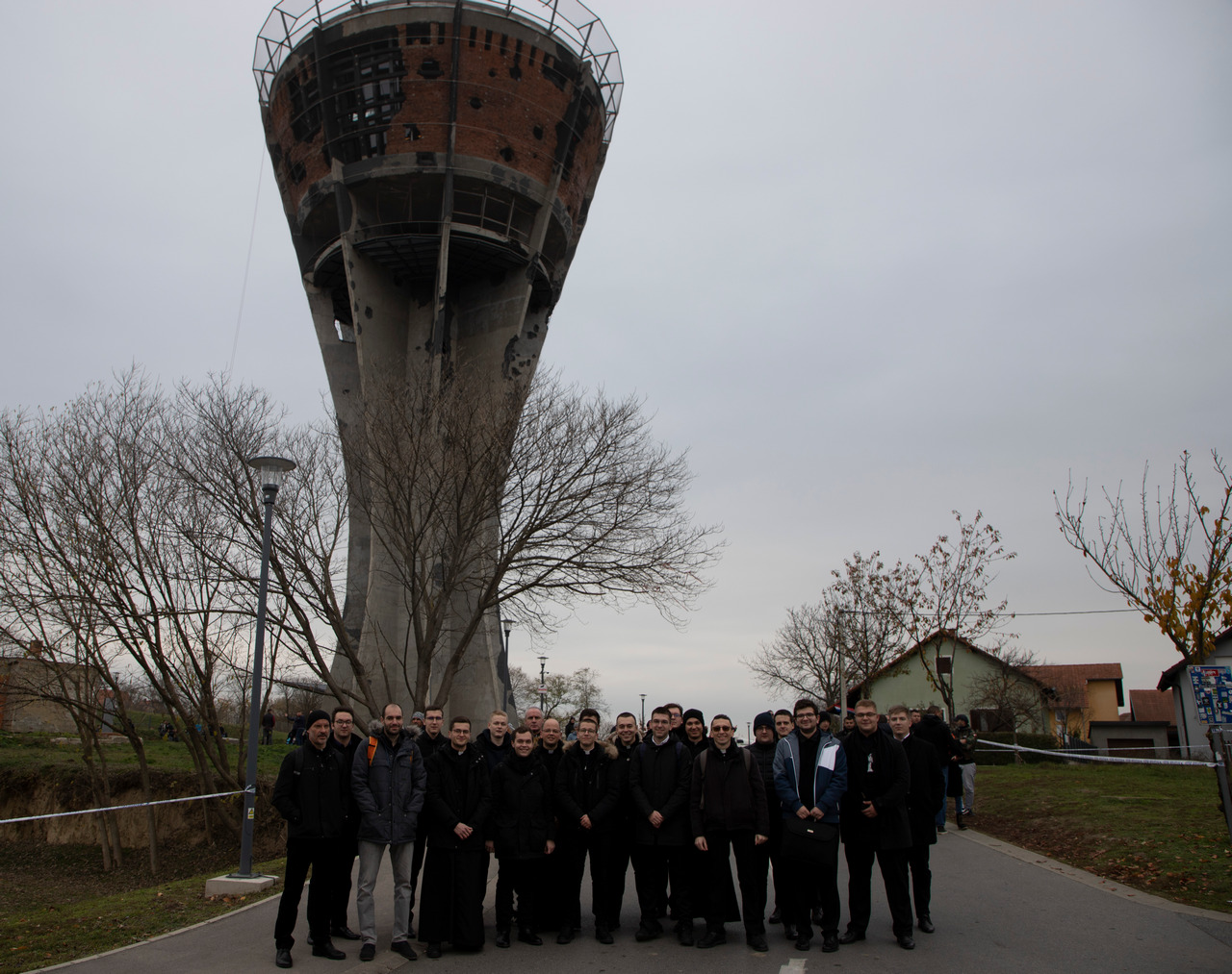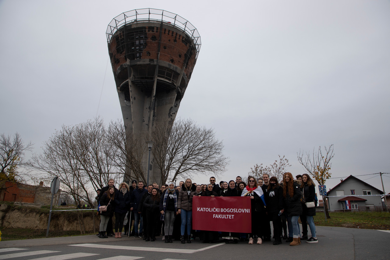 U popodnevnim satima, 17. studenog, smjestili smo pristigle studente u studentski dom. Nakon toga je uslijedilo razgledavanje zgrade fakulteta i misno slavlje koje je predslavio izv. prof. dr. sc. monsinjor Vladimir Dugalić, dekan Kbf-a u Đakovu. Slavlje je animirao studentski zbor Ruah, pojačan talentiranim glazbenicima s Kbf-a u Zagrebu. Dekan je goste upoznao s djelovanjem našeg fakulteta, a potom i s ratnim zbivanjima u Vukovaru. Po završetku misnog slavlja, bogoslov 5. godine, Antonio Pekić, poveo je naše goste u razgledavanje katedrale Svetog Petra. Susret smo nastavili druženjem za zajedničkim stolom. U rano jutro 18. studenog, uputili smo se u herojski grad Vukovar. Sudjelovali smo u Koloni sjećanja i zajedno sa zajednicom Nadbiskupskog bogoslovnog sjemeništa u Zagrebu molili krunicu za sve naše stradale branitelje i civile. Krunica je bila ono iz čega je naš narod crpio snagu, nadu i ustrajnost. Uz mnoge posmrtne ostatke pronađene su krunice, molitvenici, džepne Biblije i ostali nabožni predmeti, što svjedoči da se naš narod uvijek utjecao Trojedinom Bogu i Blaženoj Djevici Mariji. Na inicijativu studenata 5. godine, tiskane su i majice s prigodnim logom koji su sami izradili inspirirani Ps 91, 14.
