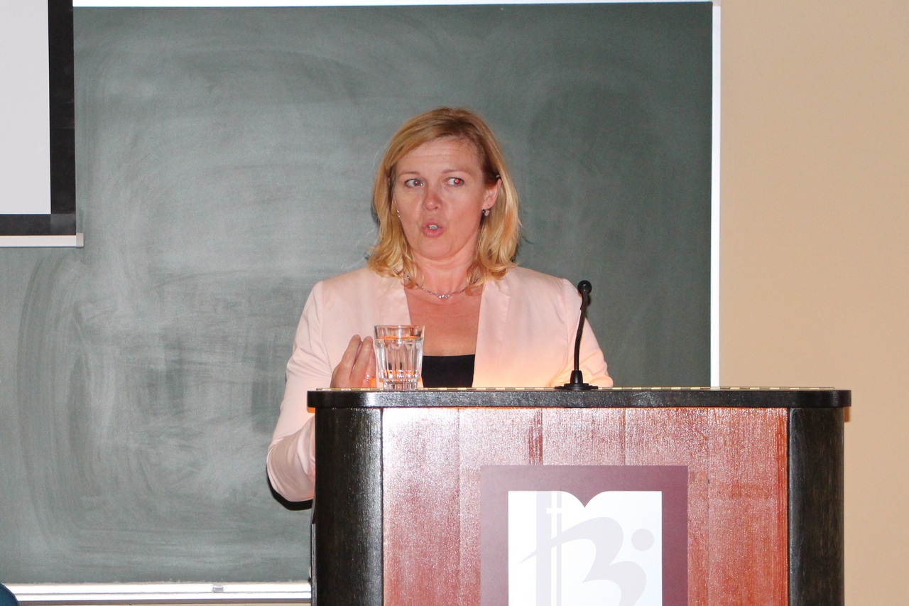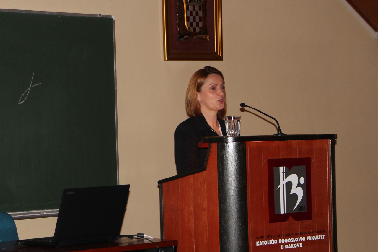 O prvoj temi Uvjeti zapošljavanja i rada govorila je dr. sc. Teuta Rezo, predstojnica Katehetskog ureda Đakovačko – osječke nadbiskupije. Naglasivši važnost poslanja vjeroučitelja u školama, ali i da prije svega teolog mora sebe vidjeti u školi, biti kritičan prema sebi, biti svjestan svojih talenata, jasno ih prepoznavati te prema tomu usmjeravati svoj rad i smjer karijere.