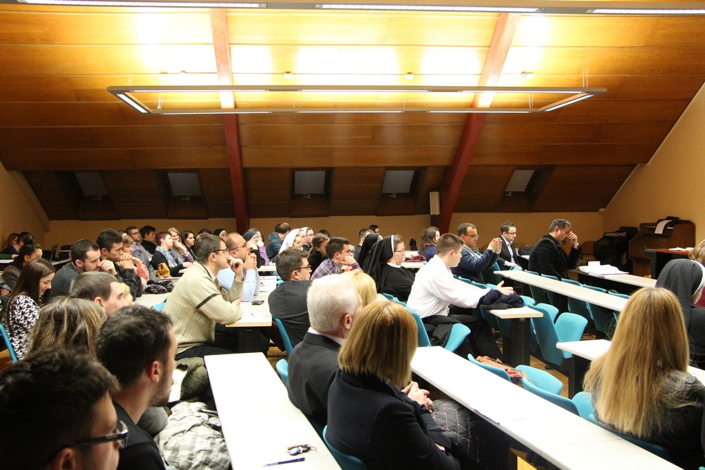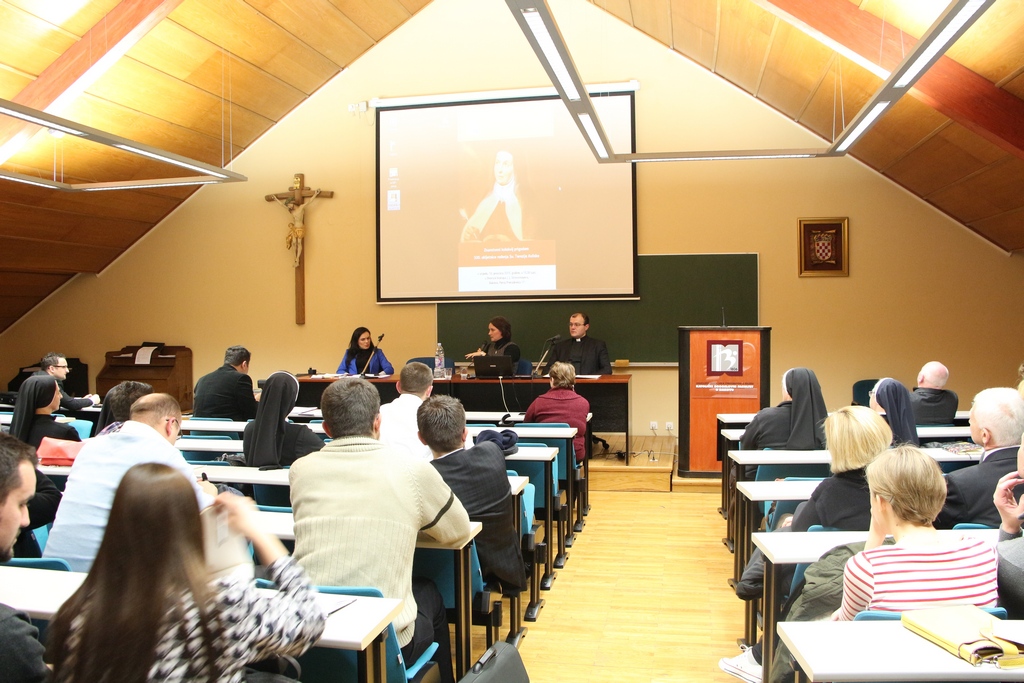 Prvo predavanje na temu “Primat milosrđa u životu i spisima sv. Terezije Avilske” održao je dr. sc. Edvard Punda, profesor KBF-a u Splitu. Na početku predavanja istaknuo je da govoriti o milosrđu znači za njega na najiscrpniji način govoriti o životu i djelovanju Sv . Terezije Avilske. Osvrnuo se na milosrđe kao teološku datost te kako je milosrđe potrebno za istinsko kršćanstvo. Polazište su mu bili Terezijini tekstovi, a izlaganje je podijelio u dva dijela gdje se u prvom fokusirao na iskustvo Sv. Terezije i na teologiju milosrđa, dok se drugi dio odnosio na duhovni rast. Uslijedilo je predavanje doc. dr. sc. Mirjana Pinezić na temu “Terezija Avilska i njezina duhovnost u spisima Edith Stein”. U prvom dijelu predavanja stavljen je naglasak na obraćenje Edite Stein upravo kroz lik i djelo Terezije Avilske.