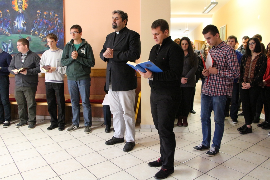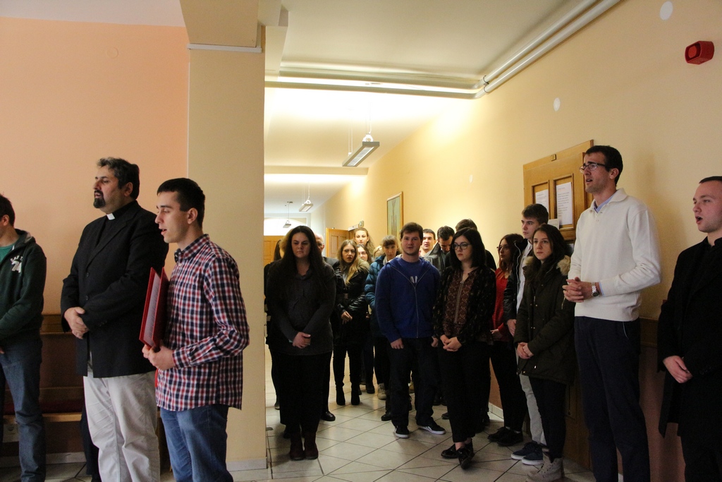 Riječi dobrodošlice svim prisutnim studentima uputio je doc. dr. sc. Grgo Grbešić, duhovnik u studentskom domu. Profesor Višaticki se u svojemu razmatranju osvrnuo na današnje riječi evanđelja u kojima se naglašava važnost uloge Ivana Krstitelja. Krstitelj je onaj koji najavljuje početak evanđelja, prorok koji pripravlja put Gospodinu, poučava mnoštvo, Ivan je novi Ilija poslan od Boga. Naglasak je stavljen na naš odnos prema dolasku Gospodina, kako se mi pripremamo u Došašću da primimo Gospodina u svoje srce. Nakon meditacija i promišljanja profesora Višatickoga, uslijedilo je zajedničko klanjanje pred Presvetim uz pratnju zbora „Ruah“.