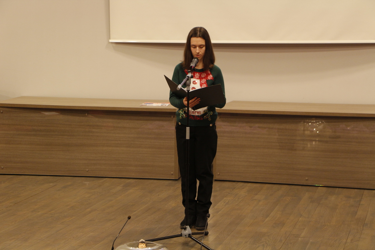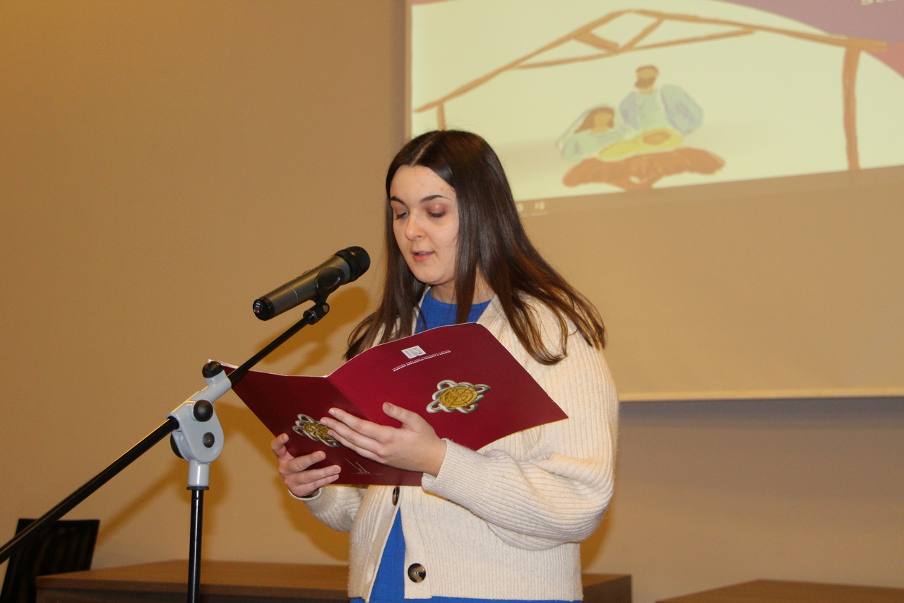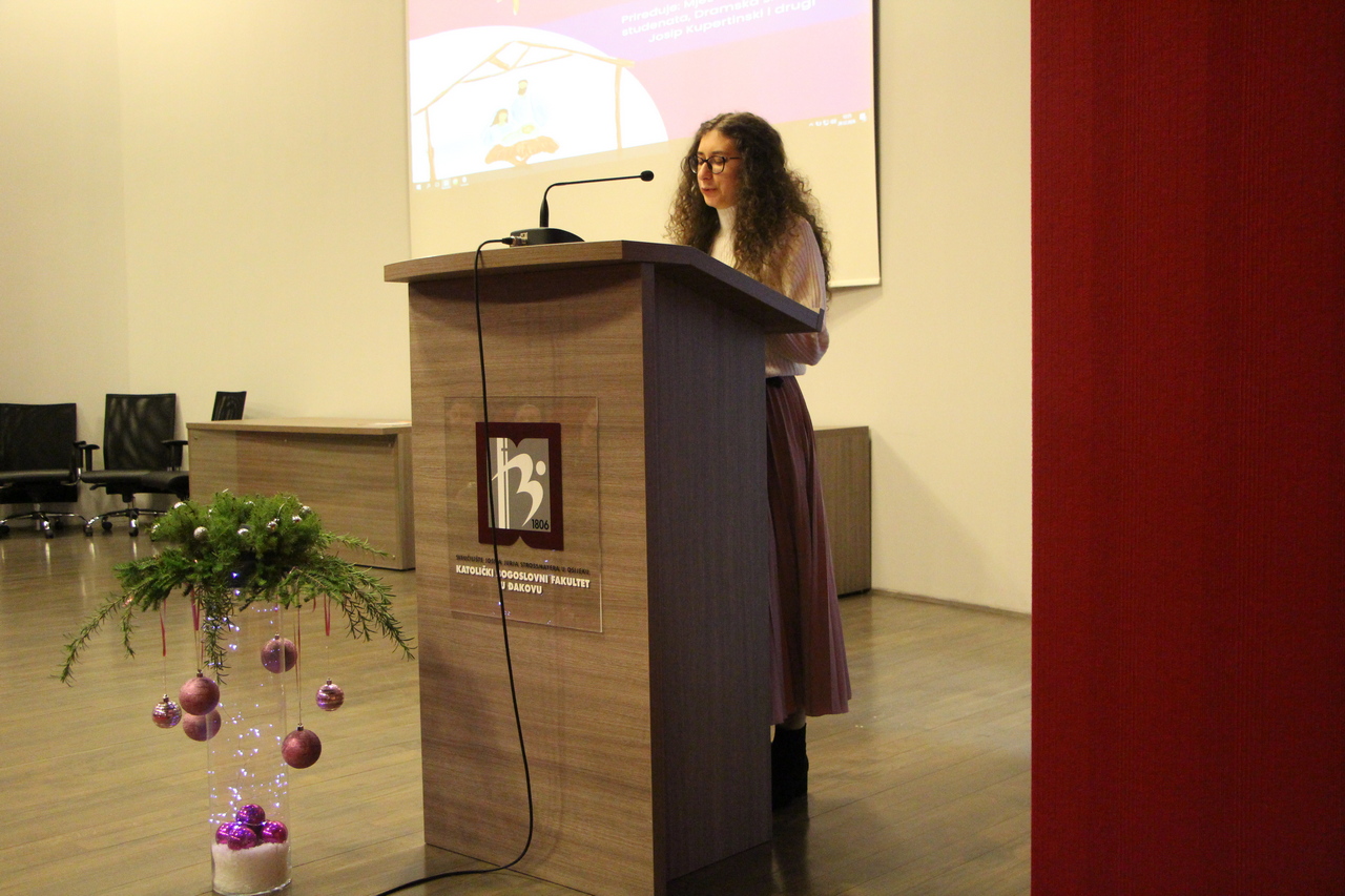 Doprinos duhovnoj dimenziji susreta dale su studentice Jelena Živković i Ema Martinić svojim nadahnutim pjesničkim recitacijama. Njihova poezija pozvala je prisutne na introspektivan susret s otajstvom Božića, razmatrajući Božju ljubav koja nas dotiče kroz poniznost Betlehemskog Djeteta.