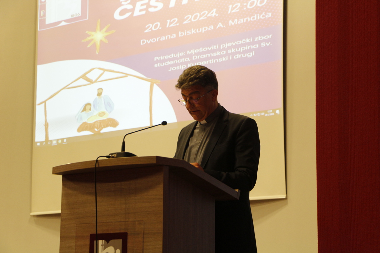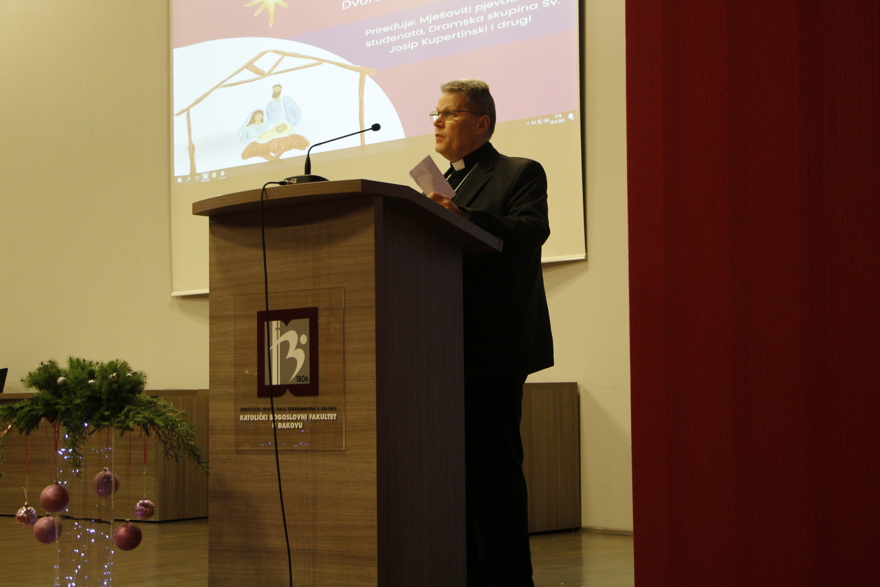 Okupljenima su Božić čestitali nadbiskup mons. sc. Đuro Hranić, dekan izv. prof. dr. sc. Ivica Pažin te predsjednica Studentskog zbora Maria Dragomirović. Njihove poruke pozivale su na dublje razmatranje otajstva Božića, naglašavajući važnost zajedništva i solidarnosti u svakodnevnom životu.