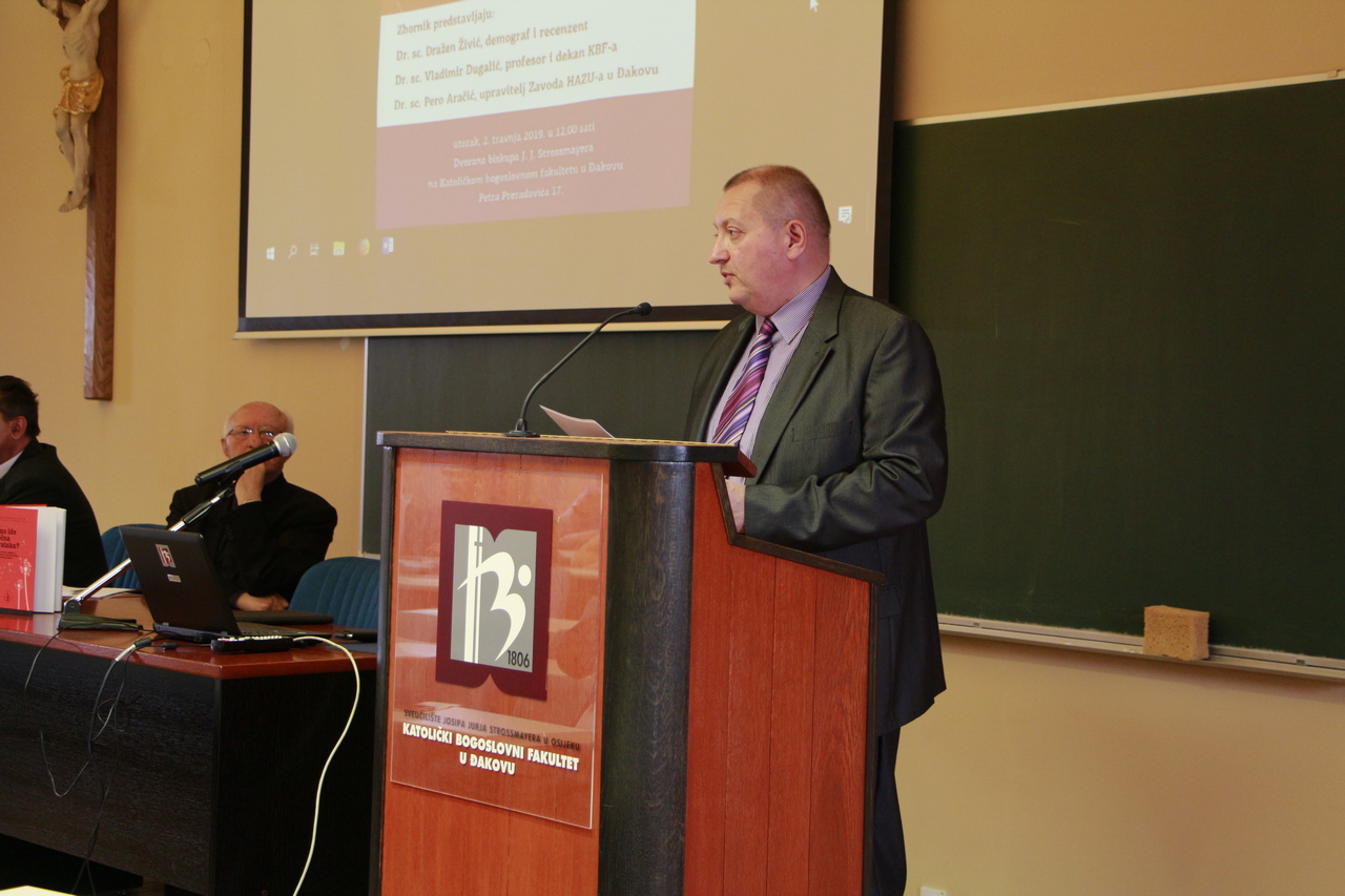 Dana 02. travnja 2019. godine na Katoličkom bogoslovnom fakultetu u Đakovu održano je predstavljanje zbornika „Kamo ide istočna Hrvatska? Demografsko stanje, traženje izlaska iz krize.“. Zbornik su predstavljali dr. sc. Dražen Živić, demograf i recenzent, izv. prof. dr. sc. Vladimir Dugalić, dekan KBF-a u Đakovu te dr. sc. Pero Aračić, upravitelj Zavoda HAZU u Đakovu.