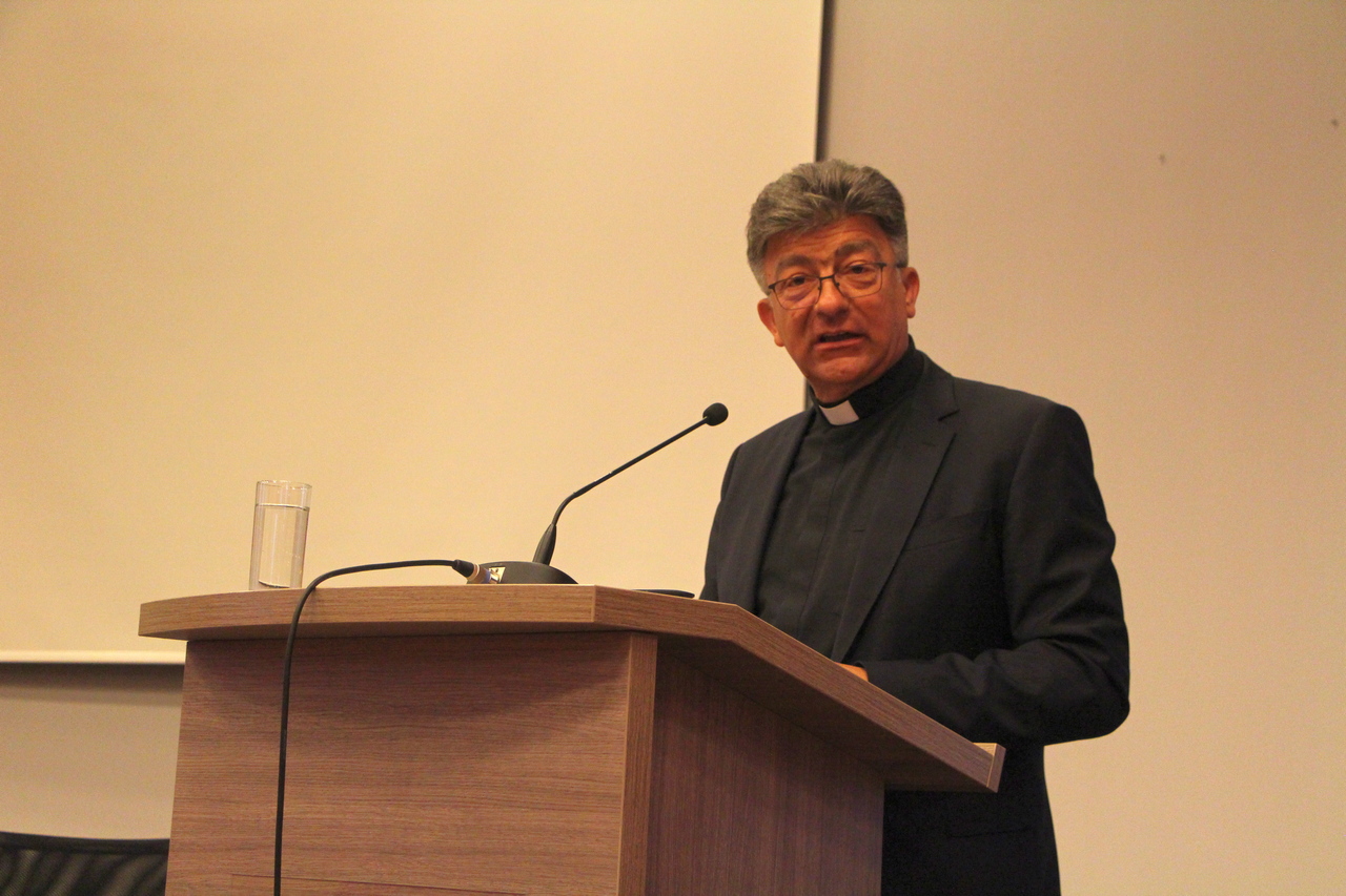 Sljedeći je sve prisutne pozdravio mons. mr. Ivan Ćurić, pomoćni biskup Đakovačko-osječki. Biskup je naglasio kako se mi ovim simpozijem želimo pridružiti mnogim ustanovama i zajednicama diljem svijeta u obilježavanju 750. obljetnice smrti sv. Tome Akvinskoga. Biskup je istaknuo kako možemo uočiti da se sa sv. Tomom lako otisnuti u dubine ljudske misli, ali i do dubina Božjih otajstava. Zbog toga je sv. Toma i dobio naslov „Angelicus“. Čitajući Tomina djela možemo se pitati što nas više zadivljuje – brojnost i obim tema, otvorenost u kojoj pokazuje kako se svijet vjere i svijet razuma ne isključuju, nego su uskladivi ili jasna metodična koherentnost njegova izlaganja.