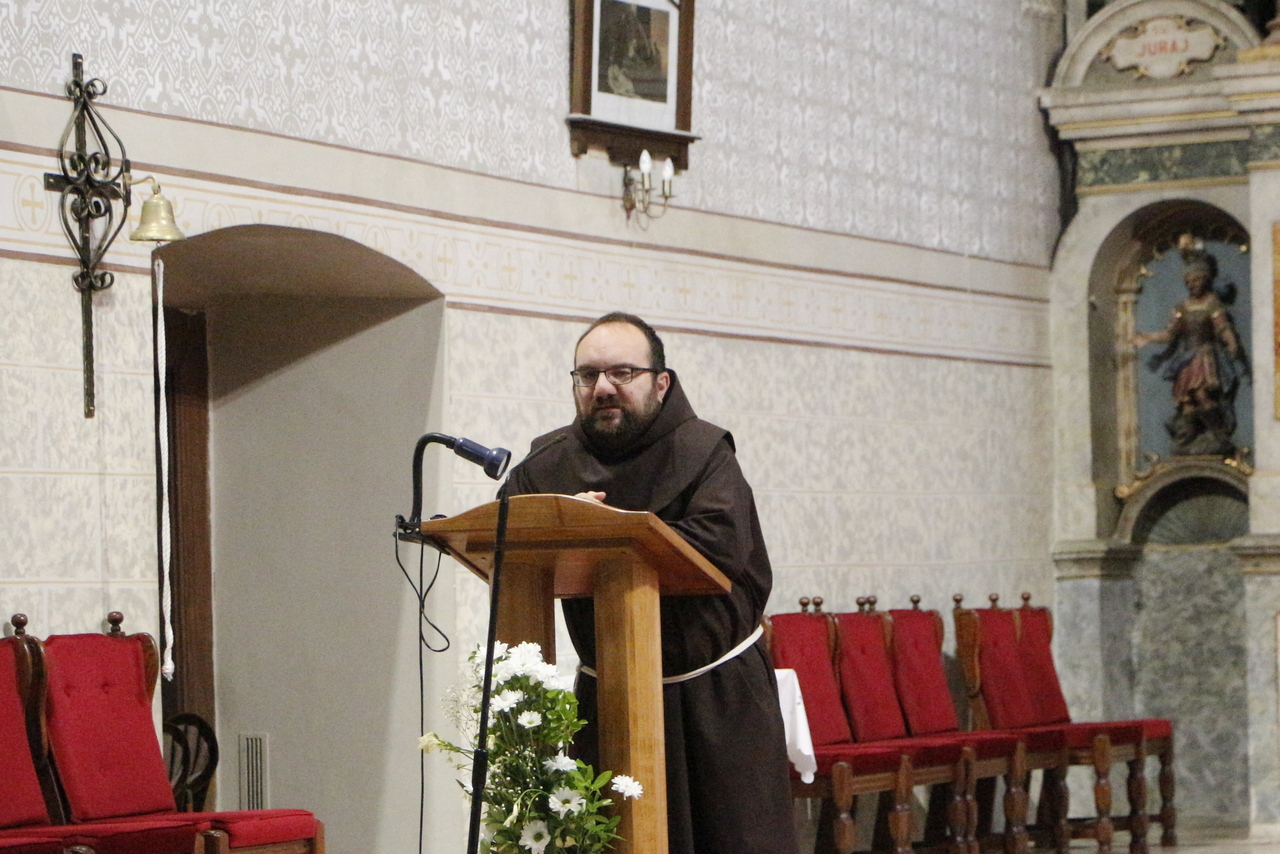 Dočekao nas je fra Petar Deže koji nam je objasnio i njezinu povijest. Nastala je u baroknom razdoblju nakon odlaska Osmanlija iz Slavonije. Poživjela je 300 godina, preživjevši i potres koji za sobom ostavio posljedice na zidovima i stropu crkve. Sada je u obnovi, a o njoj brinu franjevci iz samostana s čijim životom nas je upoznao fra Petar. Nakon toga, Biblijski arheološki muzej obišli smo s prof. Benakovićem. Muzej je otvoren 2005. godine, nastojanjem dr. Fra Tomislava Vuka, profesora na Fakultetu za biblijske znanosti i arheologiju u Jeruzalemu. Obilazak izložbe započeli smo ponajprije smještanjem u kontekst prostora i vremena u kojem je nastajala Božja riječ, što nam je omogućio prikaz Bliskog istoka, tj. Svete zemlje i najznačajnijih novozavjetnih mjesta: Betlehema, Nazareta, Kafarnauma i Jeruzalema. Fotografije i opisni tekstovi te izlošci autentičnih predmeta, raznovrsnih rukopisa i tiskanih izdanja knjiga prate kronološki slijed od paleolitika pa sve do 8./9. st. poslije Krista, što nam je pobliže predočilo narod i njegovu kulturu. Obilazak smo završili posjetom knjižnice koja posjeduje mnogobrojne vrijedne i rijetke sveske i knjige. Zatim je uslijedila sveta misa koju je predvodio prof. Benaković. Završetkom mise zajedničko druženje se nastavilo uz večeru.