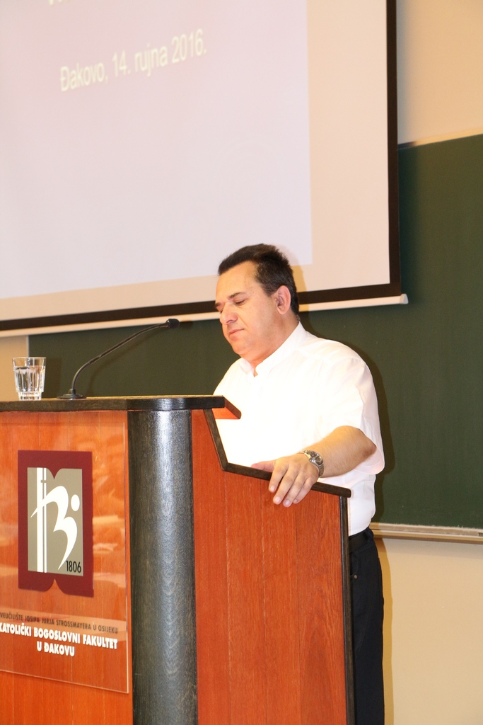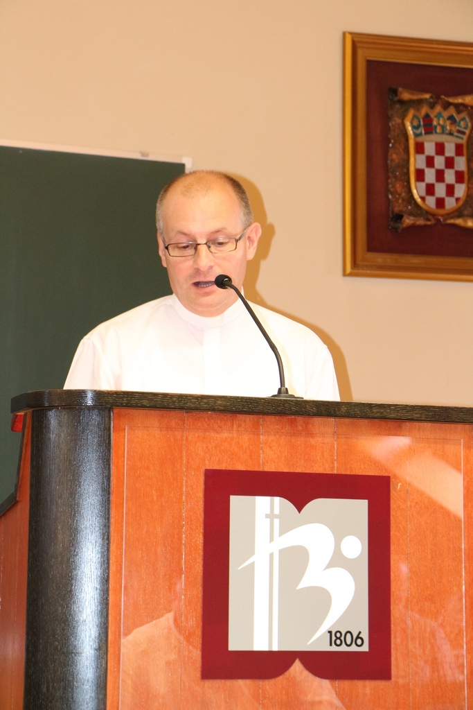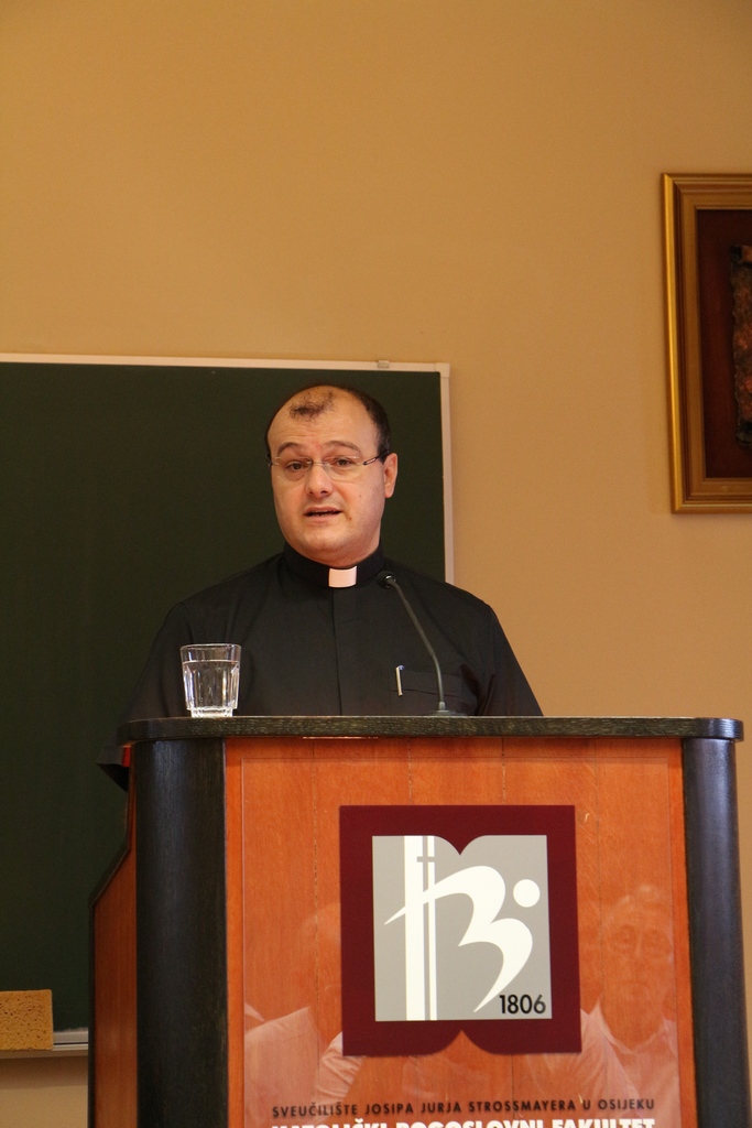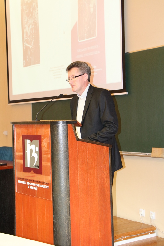 Prvo predavanje održao je doc. dr. sc. Dubravko Turalija, profesor biblijskih znanosti na KBF-u u Sarajevu, na temu „Krivnja, kajanje i pomirenje u Novome zavjetu“.
