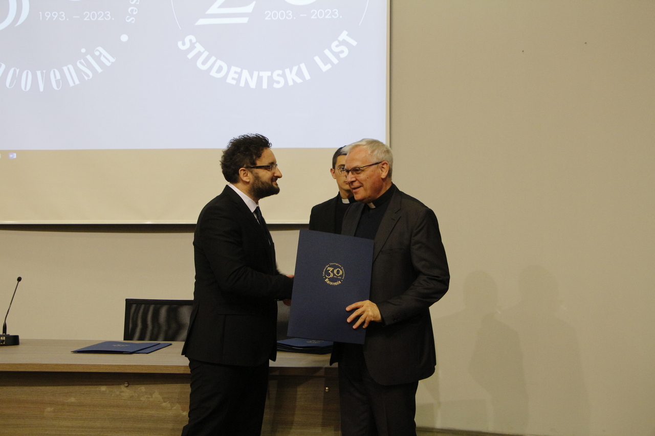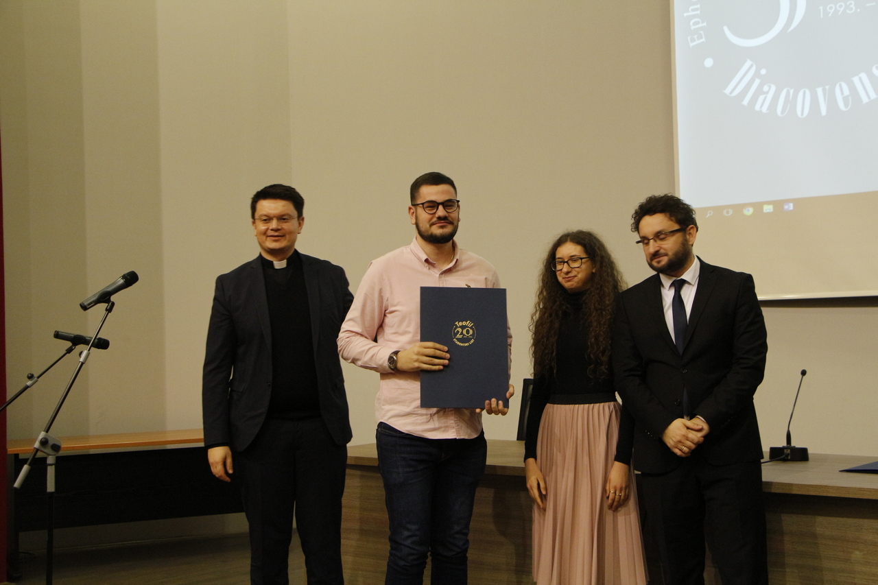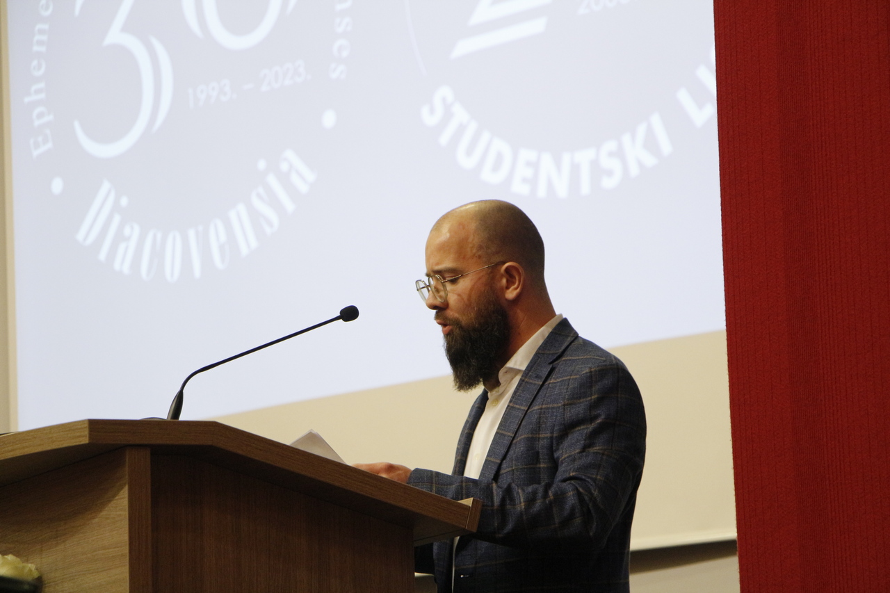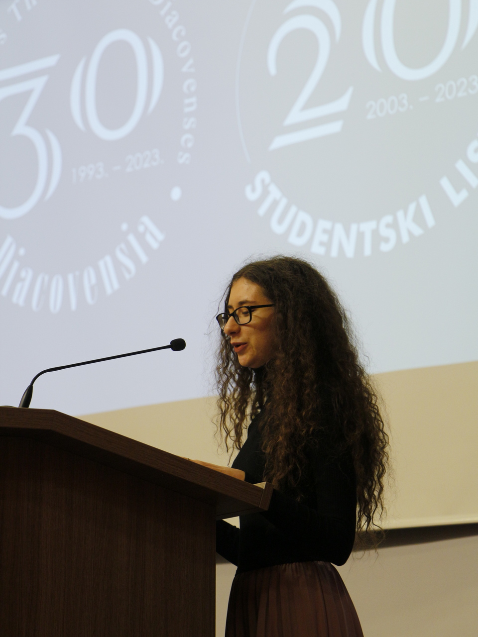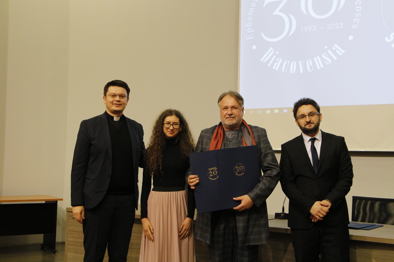Skupu se prigodnim promišljanjem obratio i prof. dr. sc. Ivan Trojan, dekan Filozofskog fakulteta Osijek. Prof. Trojan govorio je o svojem iskustvu uređivanja časopisa za književnost i kulturu, čestitavši važnu obljetnicu časopisima Diacovensia i Teofil. Promišljanjem naslovljenim „O pisanju” obratio se i glavni i odgovorni urednik časopisa Diacovensia – Teološki prilozi, izv. prof. dr. sc. Šimo Šokčević te progovorio o načelima kvalitetnoga i dobroga pisanja koji obuhvaćaju promišljanje prije pisanja, sigurnost da se ima što za reći, izgradnju vlastita stila, izvornost, poštivanje čitatelja te važnost dobrog naslova pojedinog rukopisa. Uslijedila je interpretacija poezije prema vlastitom izboru iz časopisa Teofil koju su otmjenim i dirljivim tonom, izveli Valentino Kujundžić i Ana Umiljanović. Svojim izlaganjem na temu „Teofil kao mogućnost razvoja kritičkog mišljenja kod studenata teologije”, glavna urednica studentskog lista Teofil, Maria Dragomirović osvrnula se na djelovanje i otvorenost teologa u odnosu na svijet, te na slabljenje kritičkog promišljanja kod studenata kroz protekle godine ohrabrivši pritom studente da se odvaže na pisanje. Na koncu prigodnu riječ uputio je i odgovorni urednik studentskog lista Teofil izv. prof. dr. sc. Boris Vulić zahvalivši se, u ime Uprave KBF-a, glavnoj urednici i uredničkom vijeću lista Teofil, te svim studentima i suradnicima, za sve ono što su vjerno ugradili i što i dalje ugrađuju u Teofil. Istaknuo je kako “knjige uvijek nađu put do svojih čitatelja” što vrijedi i za list Teofil, kojem je jedna od zadaća uhvatiti i prikazati filozofsko-teološku misao. Nakon prigodnih obraćanja uslijedila je podjela povelja zahvalnosti. Povelje zahvalnosti primili su: nadbiskup u miru, mons. dr. Marin Srakić (pružanje oslonca časopisu i doprinos prilozima kojima je obogatio časopis Diacovensia- Teološki prilozi); mons. dr. Đuro Hranić (za podršku, razumijevanje, prihvaćanje koje je kao dijecezanski biskup iskazivao uredništvu časopisa Diacovensia-Teološki prilozi, te lista Teofil); prof. dr. sc. Vladimir Dugalić (8 godina vršenja službe glavnog i odgovornog urednika časopisa Diacovensia- Teološki prilozi, od 1999. do 2007.g.); prof. dr. sc. Ivica Raguž (8 godina vršenja službe glavnog i odgovornog urednika časopisa Diacovensia- Teološki prilozi, od 2008. do 2016.g.); Ekonomat Nadbiskupije (materijalna i prijateljska podrška kojom se dugi niz godina osiguravalo redovito tiskanje časopisa); UZUK (pružanje materijalne podrške i potpore časopisu); prof. dr. sc. Vlado Guberac, rektor Sveučilišta J. J. Strossmayera u Osijeku (prijateljska podrška i materijalna pomoć časopisu Diacovensia-Teološki prilozi i časopisu Teofil); mons. Ivan Ćurić (prijedlog koji je izabran kao naziv znanstvenog časopisa Katoličkog bogoslovnog fakulteta u Đakovu); Željko Filajdić (predan i marljiv rad u realizaciji svakog broja); Mirko Mihaljević (neumoran i predan rad, beskrajno strpljenje, profesionalnost i dugogodišnju suradnju); Sabina Luketić (neumorna briga, marljivost i stručnost u pogledu lekture); Damir Latin (velik doprinos i dugogodišnju predanu suradnju); Dino Klem (2 godine vršenja službe stručnog suradnika časopisa Diacovensia-Teološki prilozi, od 2017. do 2019.g.); Antonija Pranjković (5 godine vršenja službe stručne suradnice časopisa Diacovensia- Teološki prilozi, od 2008. do 2013.g.); prof. s. Marija Stela Filipović (briga za ljepotu hrvatskog jezika u časopisu Diacovensia-Teološki prilozi ); prof. Divna Ćurić (višegodišnji i predan rad na prijevodima i lekturi engleskoga jezika u časopisu Diacovensia-Teološki prilozi); mr. sc. Josip Filipović (entuzijazam i trud ugrađen u Teofil); Marin Ivanišić (pružanje tehničke pomoći u pripremanju časopisa Teofil i za veliko zalaganje u svakom povjerenom zadatku); Ana Vladić (lektura tekstova i suradnja); doc. dr. sc. Tomislav Ćurić (za prijedlog koji je izabran kao naziv lista Teofil i autora prvog loga lista); studentski zbor J. J. Strossmayera (dugogodišnju prijateljsku i materijalnu podršku u izdavanju studentskog lista Teofil). Časopisima su pristigle brojne čestitke od suradnika i prijatelja diljem Republike Hrvatske, Europe i svijeta. Nakon službenog dijela akademije i posljednje glazbene točke, svi nazočni bili su pozvani pogledati prigodnu izložbu koju su u navedenoj prigodi pripremile knjižničarke Tihonija Zovko i Ankica Landeka. Svečanost je završena domjenkom i druženjem.