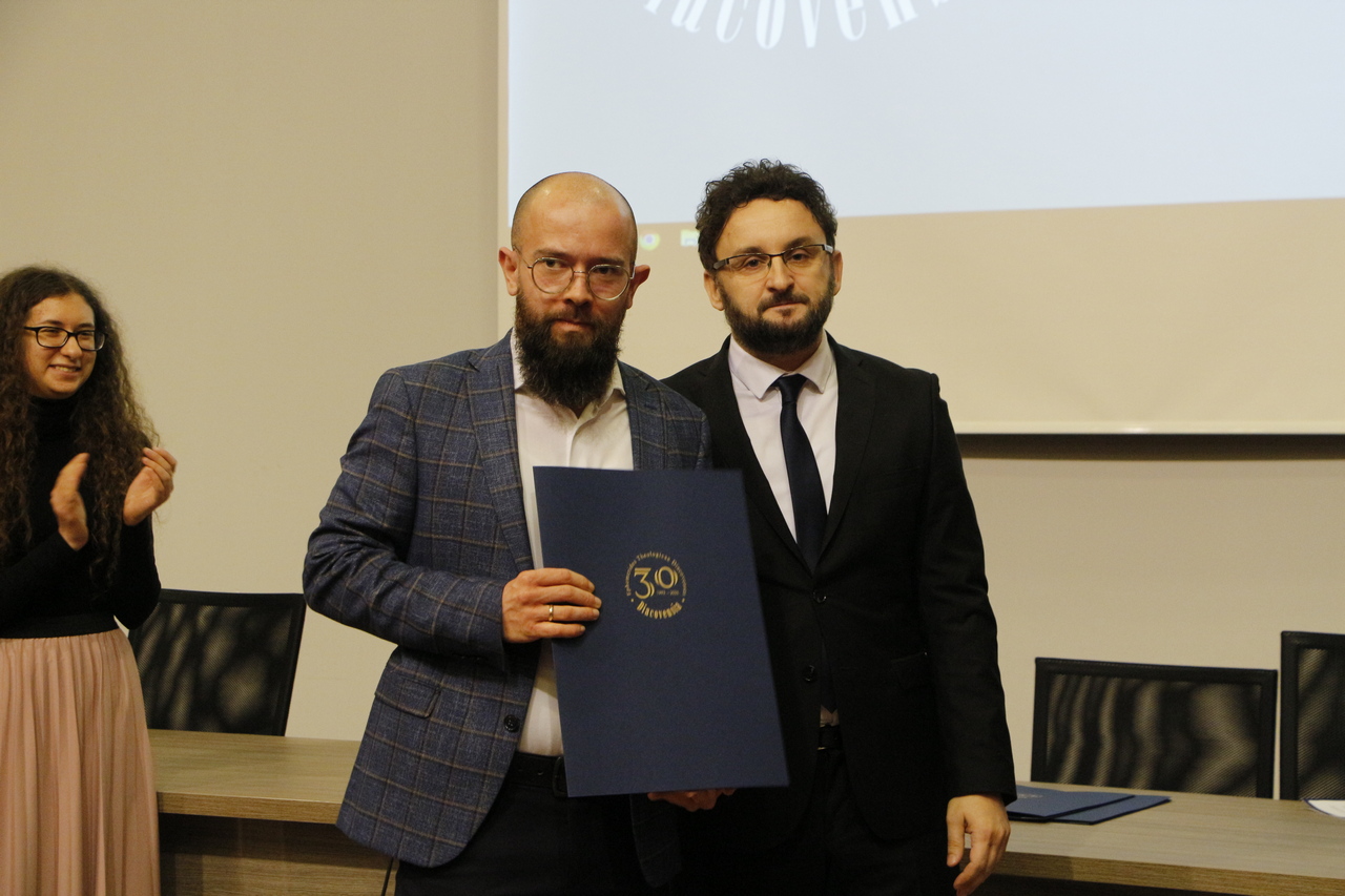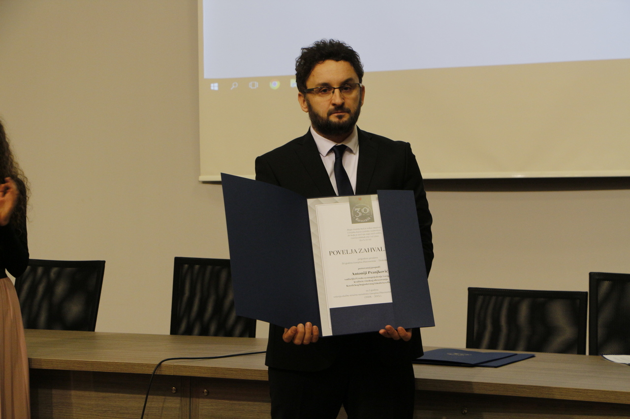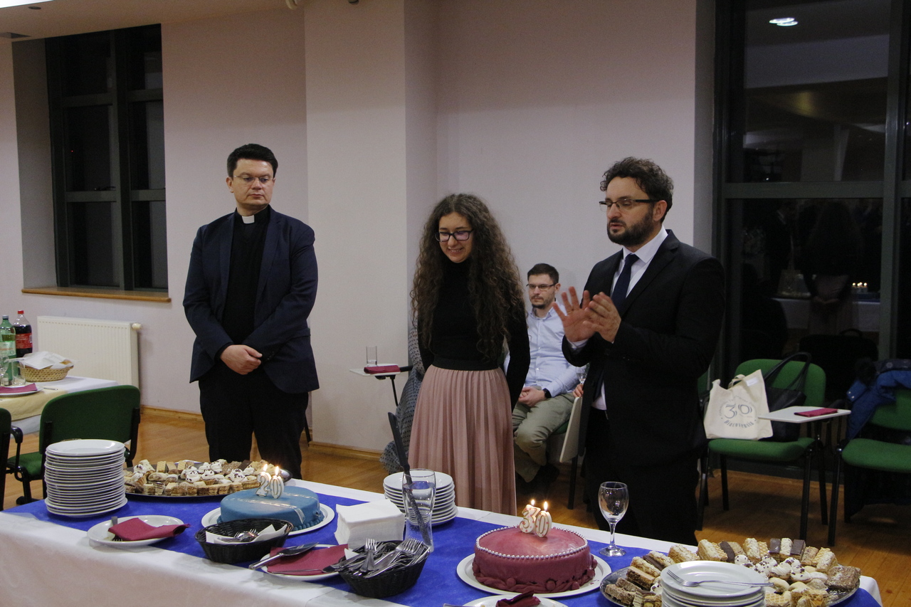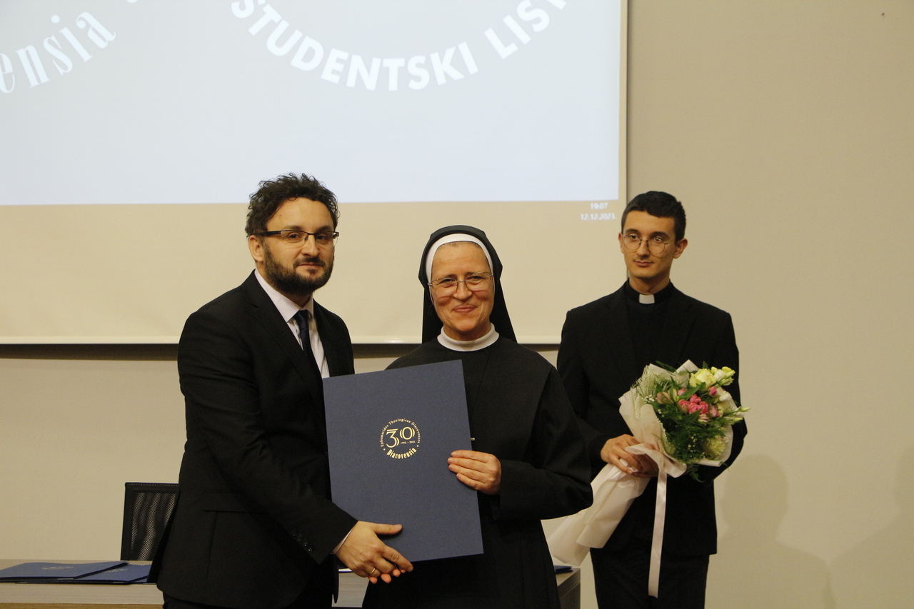 Skupu se prigodnim promišljanjem obratio i prof. dr. sc. Ivan Trojan, dekan Filozofskog fakulteta Osijek. Prof. Trojan govorio je o svojem iskustvu uređivanja časopisa za književnost i kulturu, čestitavši važnu obljetnicu časopisima Diacovensia i Teofil. Promišljanjem naslovljenim „O pisanju” obratio se i glavni i odgovorni urednik časopisa Diacovensia – Teološki prilozi, izv. prof. dr. sc. Šimo Šokčević te progovorio o načelima kvalitetnoga i dobroga pisanja koji obuhvaćaju promišljanje prije pisanja, sigurnost da se ima što za reći, izgradnju vlastita stila, izvornost, poštivanje čitatelja te važnost dobrog naslova pojedinog rukopisa. Uslijedila je interpretacija poezije prema vlastitom izboru iz časopisa Teofil koju su otmjenim i dirljivim tonom, izveli Valentino Kujundžić i Ana Umiljanović. Svojim izlaganjem na temu „Teofil kao mogućnost razvoja kritičkog mišljenja kod studenata teologije”, glavna urednica studentskog lista Teofil, Maria Dragomirović osvrnula se na djelovanje i otvorenost teologa u odnosu na svijet, te na slabljenje kritičkog promišljanja kod studenata kroz protekle godine ohrabrivši pritom studente da se odvaže na pisanje. Na koncu prigodnu riječ uputio je i odgovorni urednik studentskog lista Teofil izv. prof. dr. sc. Boris Vulić zahvalivši se, u ime Uprave KBF-a, glavnoj urednici i uredničkom vijeću lista Teofil, te svim studentima i suradnicima, za sve ono što su vjerno ugradili i što i dalje ugrađuju u Teofil. Istaknuo je kako “knjige uvijek nađu put do svojih čitatelja” što vrijedi i za list Teofil, kojem je jedna od zadaća uhvatiti i prikazati filozofsko-teološku misao. Nakon prigodnih obraćanja uslijedila je podjela povelja zahvalnosti. Povelje zahvalnosti primili su: nadbiskup u miru, mons. dr. Marin Srakić (pružanje oslonca časopisu i doprinos prilozima kojima je obogatio časopis Diacovensia- Teološki prilozi); mons. dr. Đuro Hranić (za podršku, razumijevanje, prihvaćanje koje je kao dijecezanski biskup iskazivao uredništvu časopisa Diacovensia-Teološki prilozi, te lista Teofil); prof. dr. sc. Vladimir Dugalić (8 godina vršenja službe glavnog i odgovornog urednika časopisa Diacovensia- Teološki prilozi, od 1999. do 2007.g.); prof. dr. sc. Ivica Raguž (8 godina vršenja službe glavnog i odgovornog urednika časopisa Diacovensia- Teološki prilozi, od 2008. do 2016.g.); Ekonomat Nadbiskupije (materijalna i prijateljska podrška kojom se dugi niz godina osiguravalo redovito tiskanje časopisa); UZUK (pružanje materijalne podrške i potpore časopisu); prof. dr. sc. Vlado Guberac, rektor Sveučilišta J. J. Strossmayera u Osijeku (prijateljska podrška i materijalna pomoć časopisu Diacovensia-Teološki prilozi i časopisu Teofil); mons. Ivan Ćurić (prijedlog koji je izabran kao naziv znanstvenog časopisa Katoličkog bogoslovnog fakulteta u Đakovu); Željko Filajdić (predan i marljiv rad u realizaciji svakog broja); Mirko Mihaljević (neumoran i predan rad, beskrajno strpljenje, profesionalnost i dugogodišnju suradnju); Sabina Luketić (neumorna briga, marljivost i stručnost u pogledu lekture); Damir Latin (velik doprinos i dugogodišnju predanu suradnju); Dino Klem (2 godine vršenja službe stručnog suradnika časopisa Diacovensia-Teološki prilozi, od 2017. do 2019.g.); Antonija Pranjković (5 godine vršenja službe stručne suradnice časopisa Diacovensia- Teološki prilozi, od 2008. do 2013.g.); prof. s. Marija Stela Filipović (briga za ljepotu hrvatskog jezika u časopisu Diacovensia-Teološki prilozi ); prof. Divna Ćurić (višegodišnji i predan rad na prijevodima i lekturi engleskoga jezika u časopisu Diacovensia-Teološki prilozi); mr. sc. Josip Filipović (entuzijazam i trud ugrađen u Teofil); Marin Ivanišić (pružanje tehničke pomoći u pripremanju časopisa Teofil i za veliko zalaganje u svakom povjerenom zadatku); Ana Vladić (lektura tekstova i suradnja); doc. dr. sc. Tomislav Ćurić (za prijedlog koji je izabran kao naziv lista Teofil i autora prvog loga lista); studentski zbor J. J. Strossmayera (dugogodišnju prijateljsku i materijalnu podršku u izdavanju studentskog lista Teofil). Časopisima su pristigle brojne čestitke od suradnika i prijatelja diljem Republike Hrvatske, Europe i svijeta. Nakon službenog dijela akademije i posljednje glazbene točke, svi nazočni bili su pozvani pogledati prigodnu izložbu koju su u navedenoj prigodi pripremile knjižničarke Tihonija Zovko i Ankica Landeka. Svečanost je završena domjenkom i druženjem.