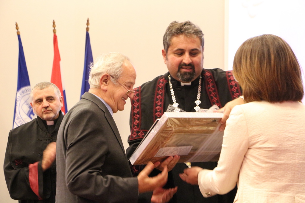 U ime rektor Sveučilišta Josipa Jurja Strossmayera u Osijeku prof. dr. sc. Željka Turkalja uvodne pozdrave uputio je prof. dr. sc. Tomislav Mrčela, prorektor za financije i poslovne odnose. Potom je i dekan KBF-a prof. dr. sc. Ivica Raguž uputio pozdrave članovima uprave i senata, te dekanima pojedinih fakulteta Sveučilišta u Osijeku. Posebno se zahvalio dekanu KBF-a u Splitu izv. prof. dr. sc. fra Anđelku Domazetu, dekanu KBF-a u Sarajevu izv. prof. dr. sc. Darku Tomaševiću, dekanu Teološkog fakulteta u Ljubljani Robertu Petkovšeku te predstavnicima Filozofsko-teološkog instituta Družbe Isusove u Zagrebu, prof. dr. sc. Ivanu Antunoviću i mr. sc. Miroslavu Čadeku. Profesor Raguž je predstavio rad fakulteta u protekloj akademskoj godini, koji se sastojao od niza znanstvenih skupova, Erasmus ugovora, studijskog putovanja, teološko-pastoralnog seminara, sudjelovanja studenata na Osječkom ljetu mladih i organizacijom 5. filozofske škole Matice Hrvatske.