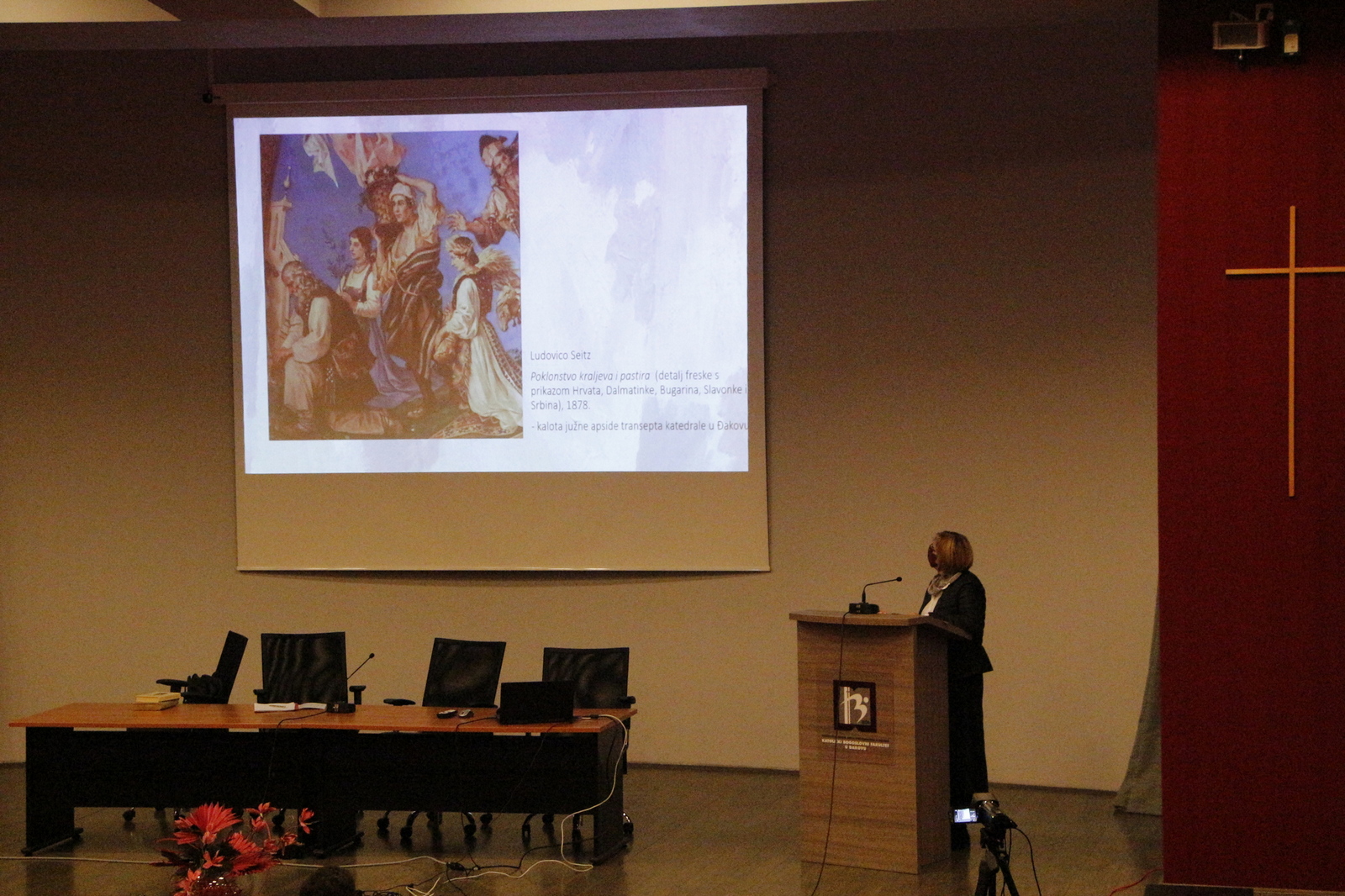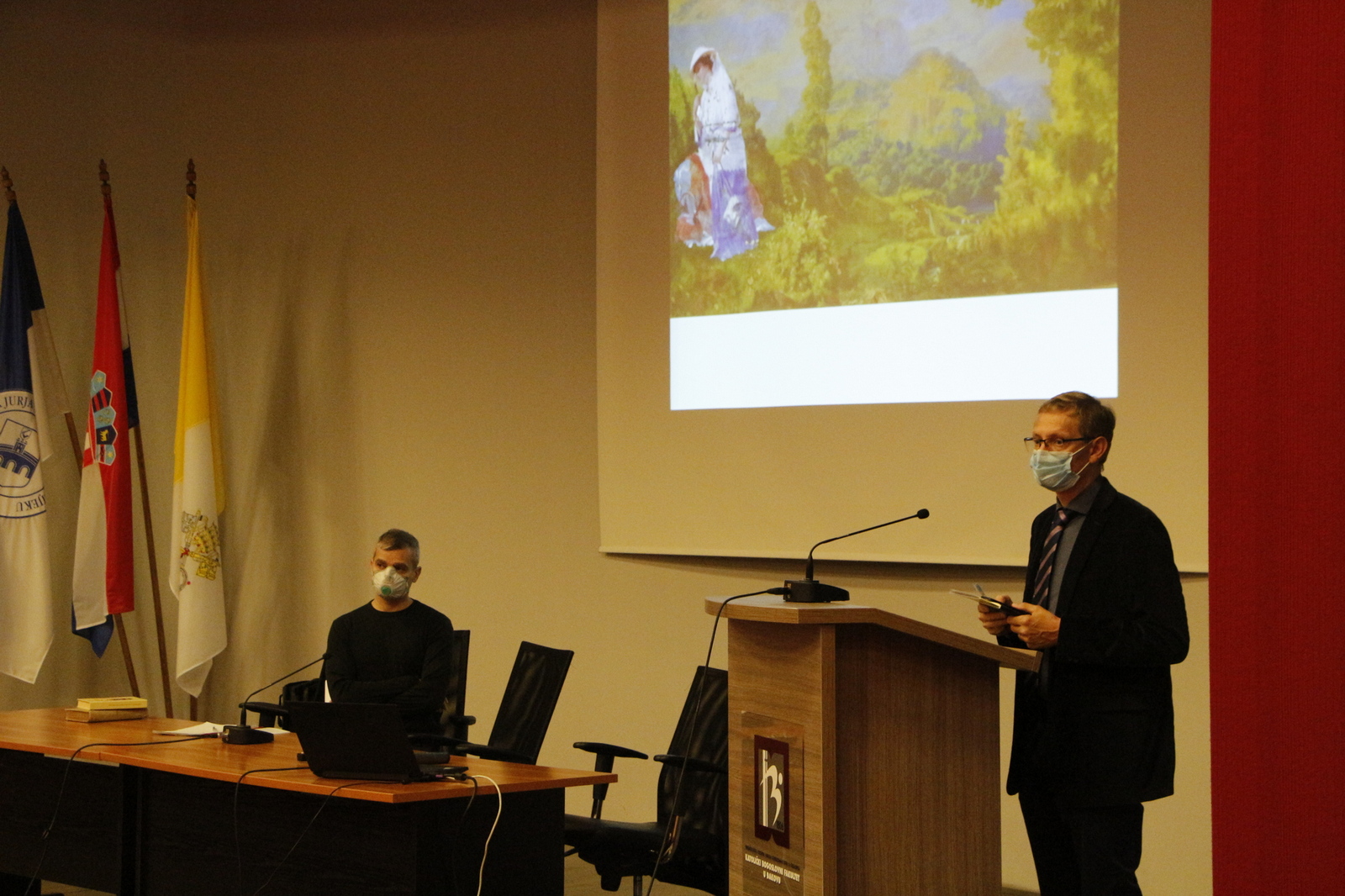 U prvom dijelu večeri, magistar Drago Marković održao je izlaganje o životu i djelovanju Pere Ivanišića Crnkovačkog koji je obilježio đakovačku teološku školu u prvoj polovici 20. stoljeća. U svom govoru istaknuo je Ivanišićev doprinos dogmatskoj teologiji i njegovu pionirsku ulogu u ekumenskim istraživanjima te povezanost vjere i kulture u njegovu teološkom promišljanju. Posebno je naglasio njegovu sposobnost da spoji znanstvenu ozbiljnost i duhovnu dubinu, kao i razumijevanje glazbe kao jezika teologije i sredstva evangelizacije. Predavanje je završilo osvrtom na trajnu vrijednost Ivanišićeva djela koje, unatoč vremenskoj distanci, ostaje nadahnuće suvremenim teolozima i vjernicima.