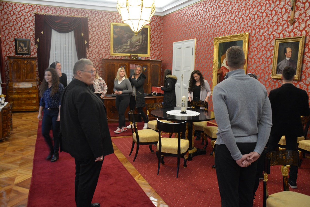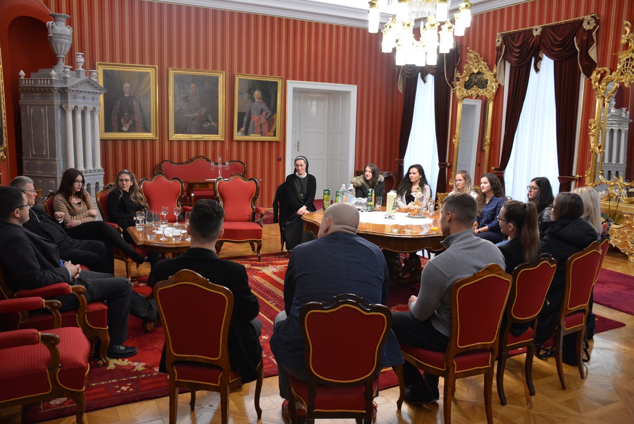 U srijedu 13. studenog 2019. godine, studenti laici V. godine, uz pratnju duhovnika studenata laika, prof. Antuna Japundžića, posjetili su nadbiskupa Đuru Hranića u prostorima nadbiskupijskog ordinarijata. Nadbiskup je studentima pokazivao prostorije ordinarijata i ukratko ih uputio u glavne događaje povijesti nastanka i razvoja biskupije s osobitim naglaskom na događanja tijekom Domovinskog rata i poraća. U nastavku razgovara nadbiskup je progovorio o problemima s kojima se studenti laici suočavaju u svakodnevnom životu i ostvarenju poziva. Studenti su nadbiskupu govorili o svom pogledu na poteškoće zaposlenja te su zajednički nastojali iznijeti neke pozitivne primjere ostvarenja starijih kolega. Nakon zajedničkog fotografiranja studenti su se zahvalili nadbiskupu te susret priveli kraju.