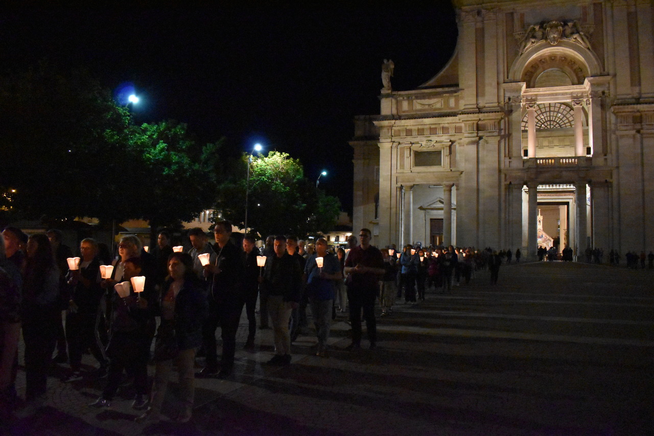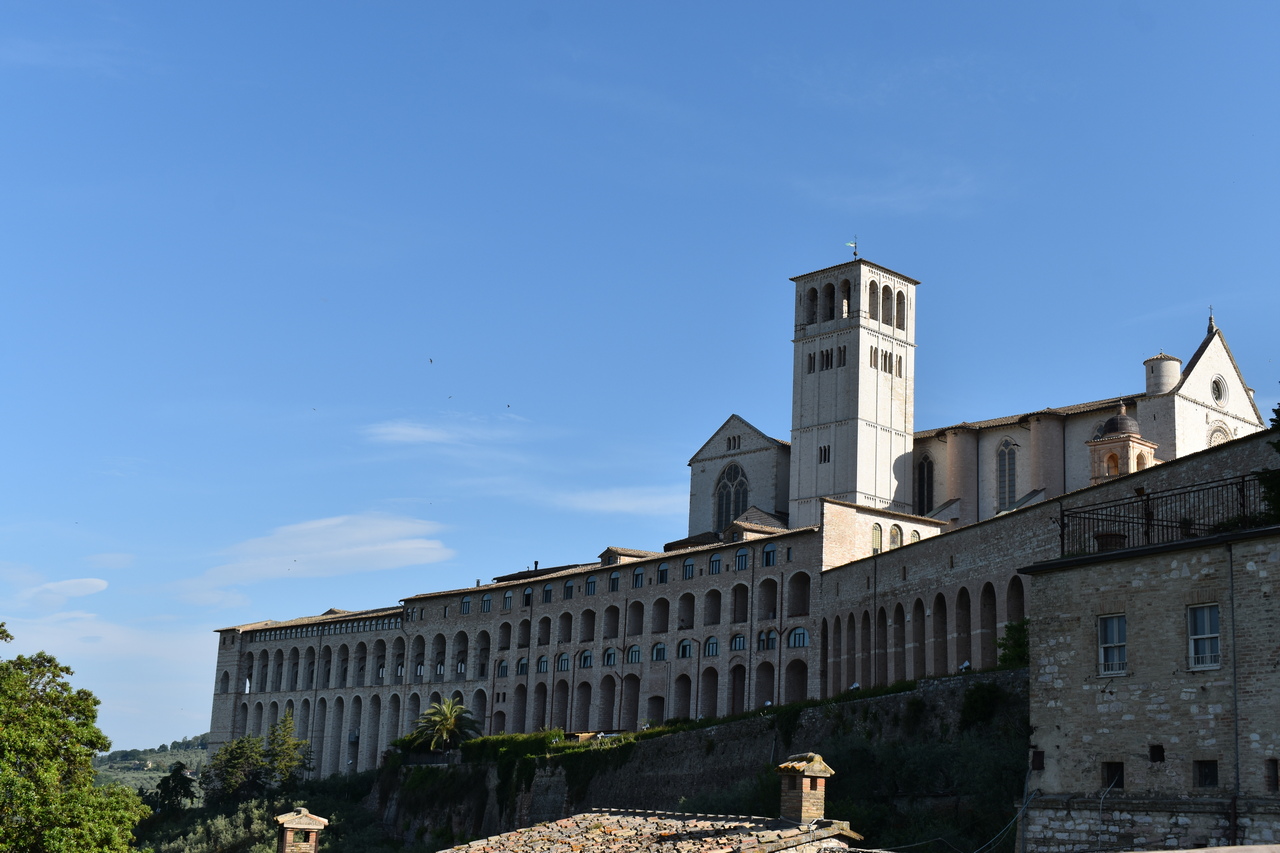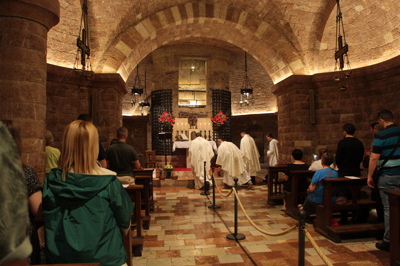 Sljedeći je dan započeo molitvom jutarnje, a kod Porcijunkule nas je dočekao fra Antonio Gašić, franjevac Bosne Srebrne, trenutno na studiju pastoralne teologije u Rimu. On nam je bio vodič oba dana u Asizu. Fra Antonio nije nam samo pokazivao i objašnjavao umjetničke znamenitosti Asiza, nego nam je ponajprije teološki i duhovno tumačio život sv. Franje. Svaka crkva bila je nova meditacija o sv. Franji. U Asizu smo prvoga dana imali sv. misu na grobu sv. Franje koju je predvodio v. d. dekana prof. dr. sc. Ivica Raguž. Pozivajući se na evanđelje dana, naglasio je kako svi mi možemo prenositi vjeru samo ako to činimo na dva način: da ju svjedočimo svojim životom, ali i u poniznosti. Tako nas evanđelist Ivan uvodi u razmatranje o svetome Franji. Dekan je istaknuo pet važnih misli o sv. Franji. Prva je ta da je za svetoga Franju daleko gore zlouporabiti krepost nego biti bez kreposti. Kaže da čovjek kada čini dobro, očekuje i želi pohvalu, a Franjo kaže da bi radije bio kuđen nego pohvaljen. Tako se druga misao nastavlja na prvu, a to je da životopisac svetoga Franje, kada govori o Franjinoj poniznosti, naglašava da je zahvaljivao za sve u životu, ali je istovremeno sebe smatrao najvećim grešnikom. Tako mu se poniznost očitovala i u vanjskome držanju. No ona nije bila samo u vanjskome držanju, već i u mišljenju. Sebe je uvijek prosuđivao u najvećoj poniznosti. I u trećoj misli, Dekan je naglasio kako Franjo nije podnosio isprazne riječi. Onima koji su govorili isprazne riječi, Franjo je savjetovao da izmole Očenaš, da ljube noge onome koje su uvrijedili svojim riječima, ali da čak stave i izmet na svoja usta. Četvrto, sv. Franjo se i rado družio s gubavcima, siromasima, bolesnima i nemoćnima te je time htio da se učimo poniznosti, sebedarju, lomljenju vlastite moći koja se očituje u tomu da tražimo društvo samo s moćnim ljudima ili onima koji nam mogu uzvratiti. Peto, kada su ga hvalili, tada je sv. Franjo sebe uspoređivao s ikonom: kao što drvo na ikoni nosi sliku Isusa i Blažene Djevice Marije i ostaje samo drvo, tako je i sv. Franjo samo drvo, i manje od drveta ikone, drvo koje nosi Isusa Krista i Blaženu Djevicu Mariju. Sve što ima, ne pripada njemu, nego Isusu i Mariji. I to je poniznost. Dekan nas je pozvao da, dok budemo razgledavali freske u bazilici sv. Franje, i sami sebe prepoznamo kao obično drvo, običan zid, ali drvo, zid, na kojemu će biti naslikana ikona Isusa Krista i Blažene Djevice Marije. Nakon razgledavanja bazilike, slijedio je obilazak rodne kuće sv. Franje, gdje smo izmoliti srednji čas te potom se pomolili u crkvi sv. Damjana, a nakon toga slobodno vrijeme za razgledavanje Asiza. Nakon večere, svi smo se uputili u Porcijunkulu gdje je bila zajednička molitva krunice i procesija sa svijećama.