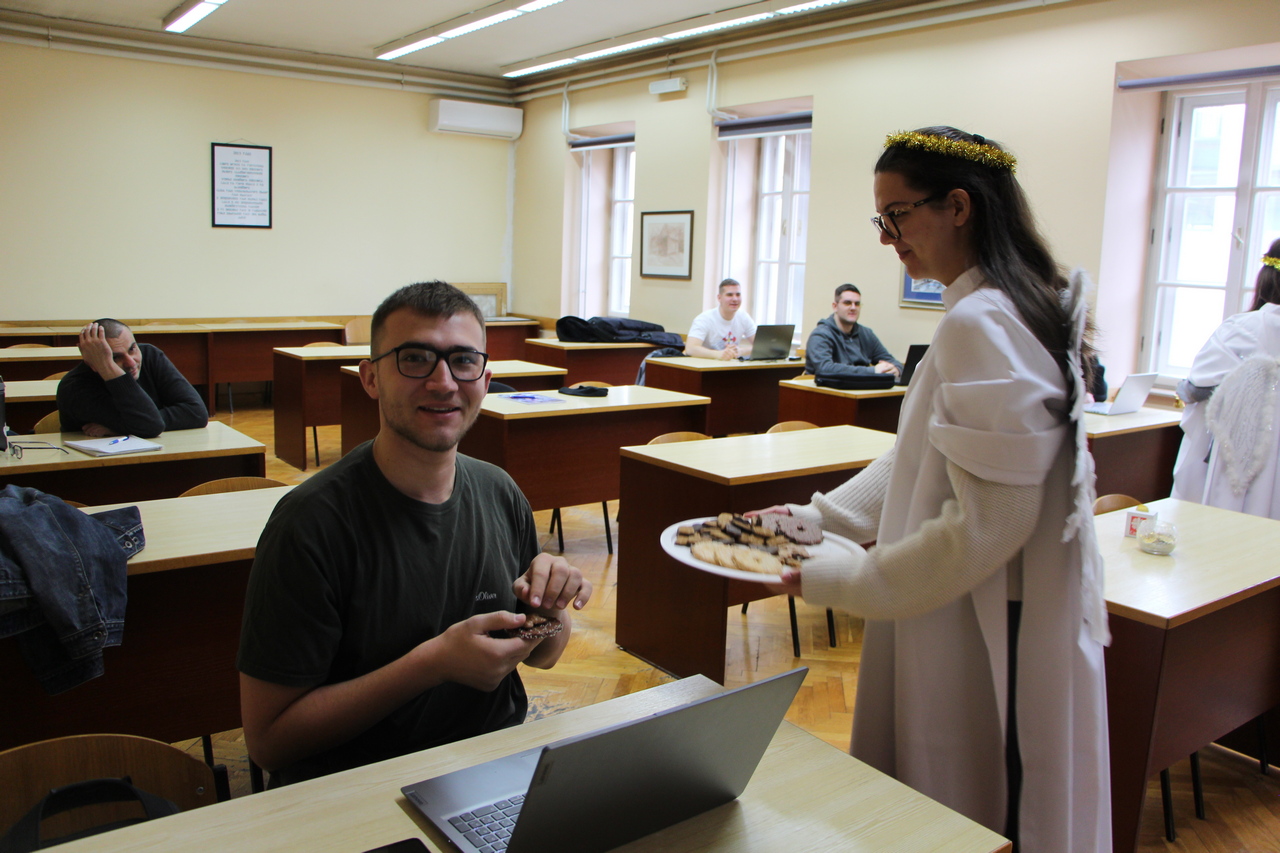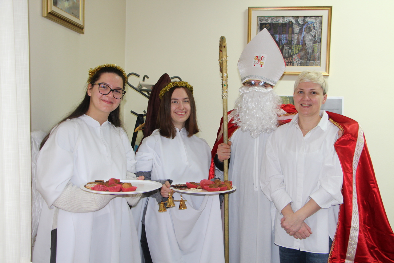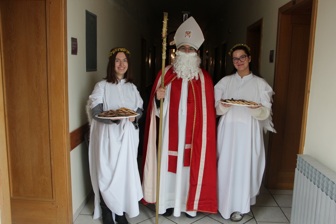 Sveti Nikola i anđeli su i ove godine razveselio studente, profesore i djelatnike KBF-a posjetivši ih i dijeleći im kekse. Nakon Fakulteta i ureda, posjetili su urede u Ordinarijatu, kao i Dom za umirovljene svećenike. Putem su uveselili brojne prolaznike, od onih najmlađih pa do najstarijih.