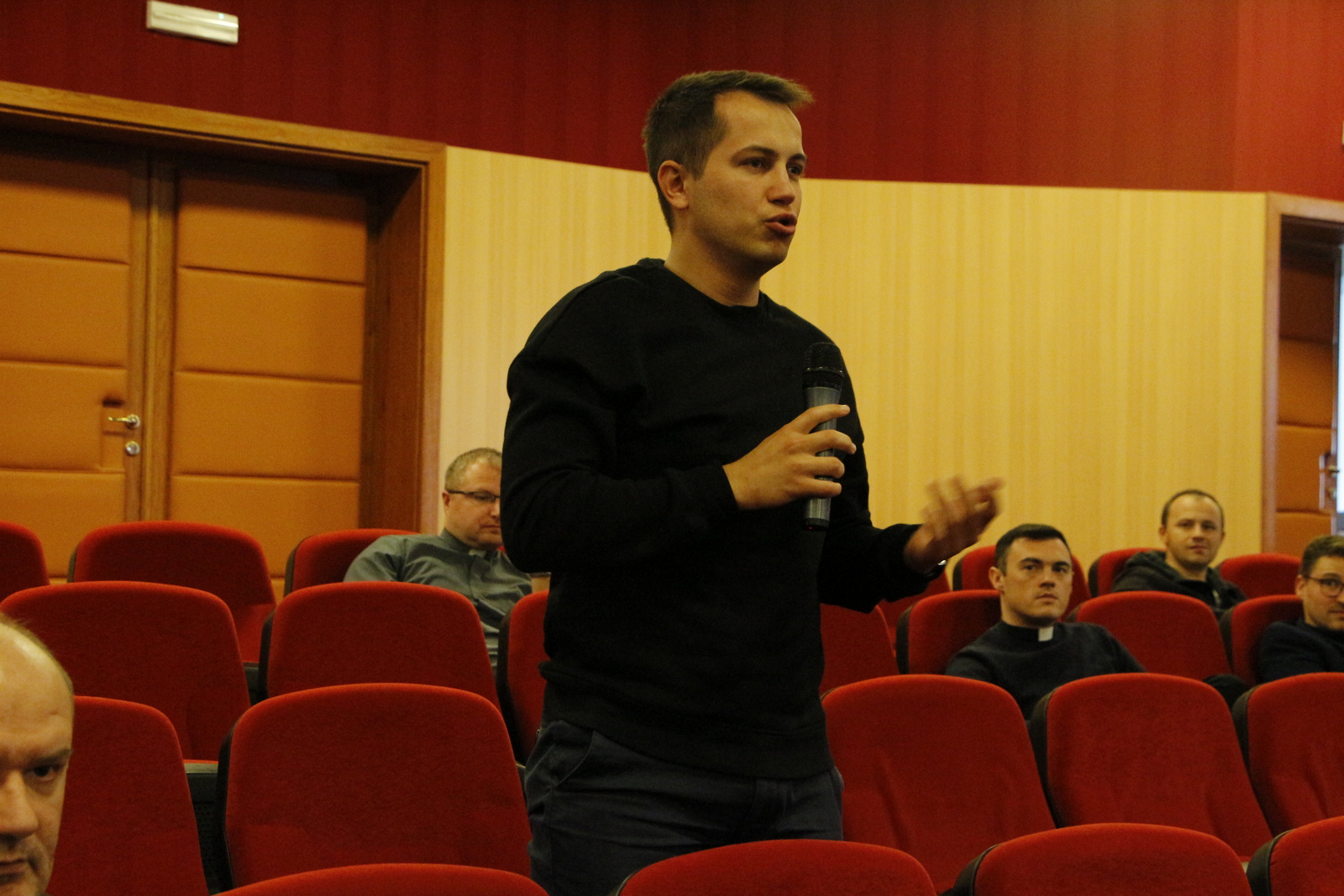 Isus se u naviještanju Radosne vijesti služio zahtjevima. Prvi i temeljni zahtjev masovne komunikacije su simboli, znakovi i geste. Drugi temeljni zahtjev masovne komunikacije jest sposobnost stvaranja priča u parabolama. One prenose vrijednosti s jedne skupine na druge. Treći zahtjev jest sposobnost dubinskog dijaloga među ljudima. Temeljni vidovi pastoralne komunikacije su: evangelizacija, katehizacija i informacija. Profesor je zatim naveo dokumente koji govore o komunikaciji. Tako je spomenuo dekret Drugog Vatikanskog sabora Inter mirifica koji govori o sredstvima društvenog priopćavanja. Naveo je i dokument Crkva i Internet Papinskog vijeća za sredstva društvenog priopćavanja u kojem vidimo da je Crkva u internetu upoznala novi digitalni prostor gdje može naviještati Evanđelje. I u našoj biskupiji vidimo kako je Crkva prepoznala važnost komunikacije putem medija, a to vidimo iz dokumenta Ti si Krist za nas i za sve ljude, ali i postojanjem Tiskovnog ureda, kao i Vjesnika.