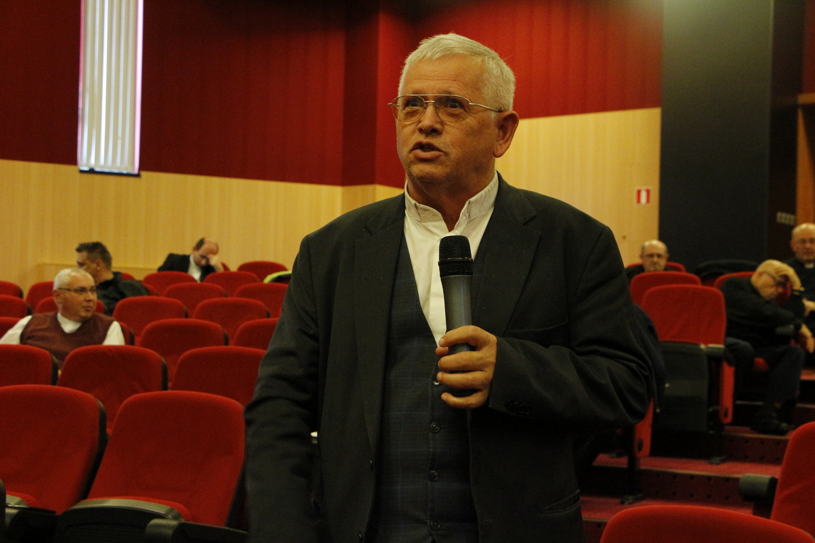 Prof. dr. sc. Vladimir Dugalić izlagao je na temu Moralno-etički aspekti komunikacije. U prvom dijelu pojasnio je kako dijalogom poštivati dostojanstvo ljudske osobe i nužnost izričaja empatije i suosjećanja u komunikaciji. U drugom je dijelu naglasio važnost naviještanja istine osobnom autentičnošću, a u trećem naveo neke izazove koje je stavilo suvremeno zakonodavstvo. Istaknuo je kako vjera počiva na dobrovoljnoj objavi Boga. Tu se ne radi o logičnom zaključku, nego o susretu dviju osoba. Vjera je više nego pokušaj spoznaje Boga, vjera je dijalog s Bogom. Bog u tom dijalogu govori jezikom objave, a čovjek sluša i odgovara. Sve su naše spoznaje relacijskog tipa i bez drugih ne bismo mogli doći do njih. U dijalogu s Bogom otkrivamo sebe, a vjera nas potiče da sebe otkrivamo u drugome. U dijalogu, važno je poštivati tuđe dostojanstvo pa na taj način dobivamo i svoje dostojanstvo. Dijalog za razliku od razgovora uvijek pretpostavlja ravnopravnost. To se očituje u sinodalnom hodu koji naglašava važnost slušanja. Svećenik je pozvan na dijalog – to je osobita forma svjedočenja, evangelizacije, a Crkva ima svoju istinu koju želi priopćiti drugima, ali na bratski način. Na tome se treba temeljiti i suradnja svećenika i suradnika. Tako svećenik mora biti sposoban slušati druge, a tek onda potaknuti na odgovornost.