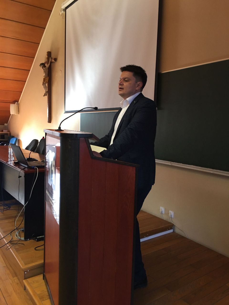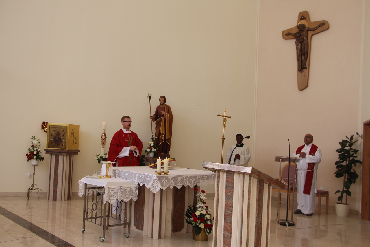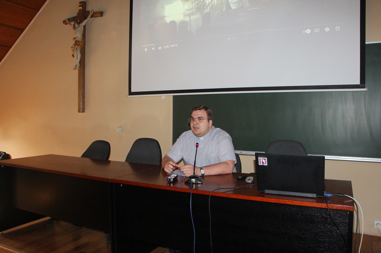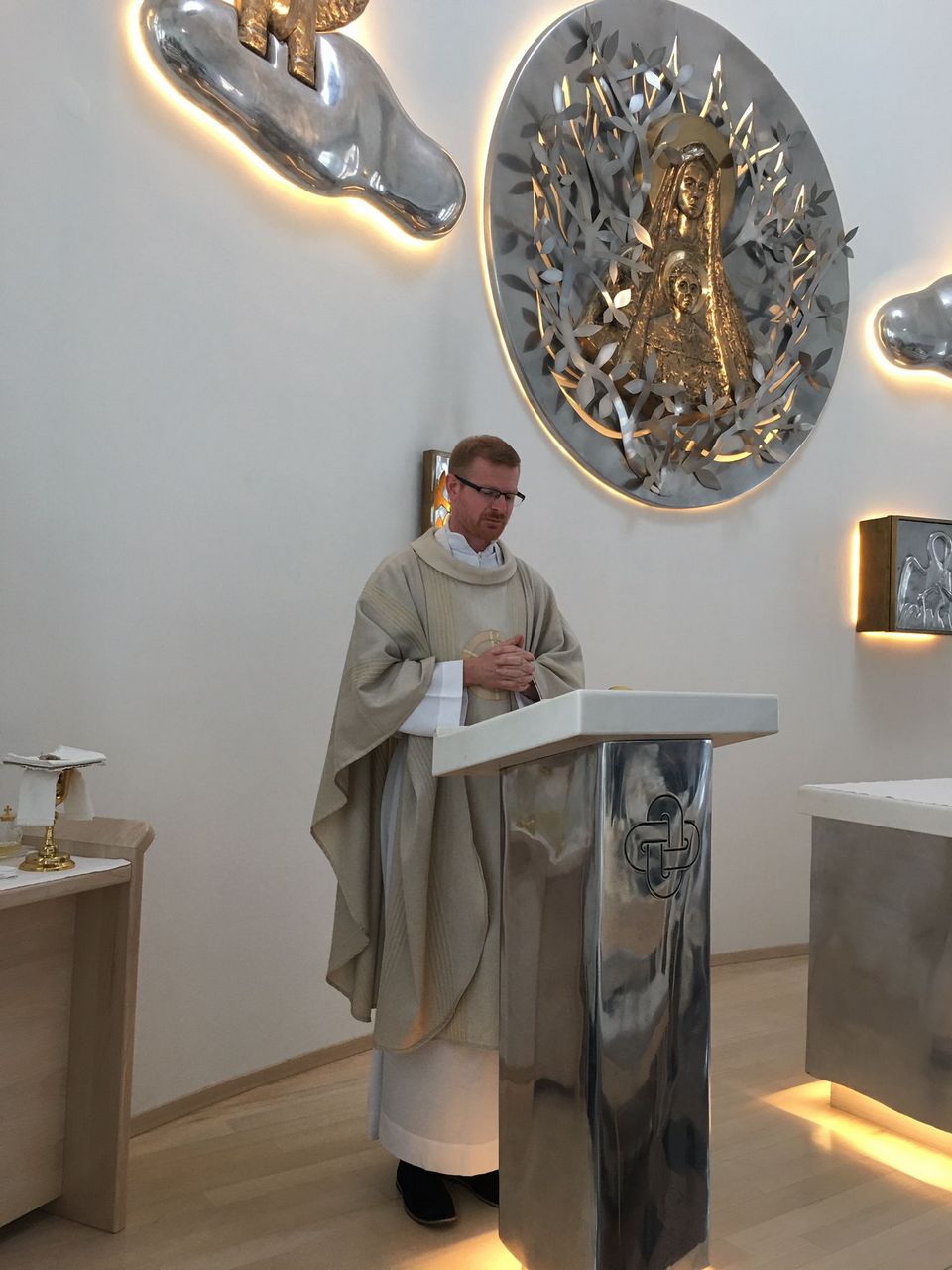 Nakon radionice, uslijedila je sveta misa koju je slavio izv. prof. dr. sc. Ivica Pažin, v.d. dekana Fakulteta. U svojoj je homiliji dekan naglasio rečenicu iz Ivanovog evanđelja kojom možemo opisati čitavo čovječanstvo: Bog je tako ljubio svijet te je dao svoga Sina Jedinorođenca da nijedan koji u njega vjeruje ne propadne, nego da ima život vječni. U toj rečenici naznačene su one vrijednosti koje, s jedne strane opisuju Boga, a s druge strane nas. Istaknuo je pojmove ljubavi i vjere, te da na definiciju Boga kao ljubavi ne možemo odgovoriti samo racionalnom spoznajom, nego onim što je duboko u nama i što budi u nama očaravanje. Ljubav je prožeta i satkana u onom što bismo kao odgovor trebali Bogu ponuditi, a to je naša osobna vjera. Vjera je, s jedne strane naš štit, a s druge strane i naša dimenzija ljubavi kojom možemo izreći naše vlastito ophođenje prema Njemu.
