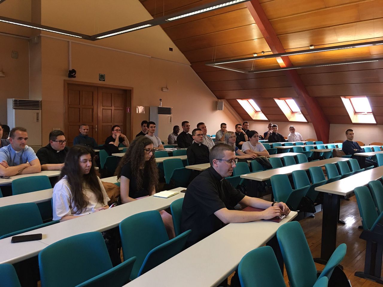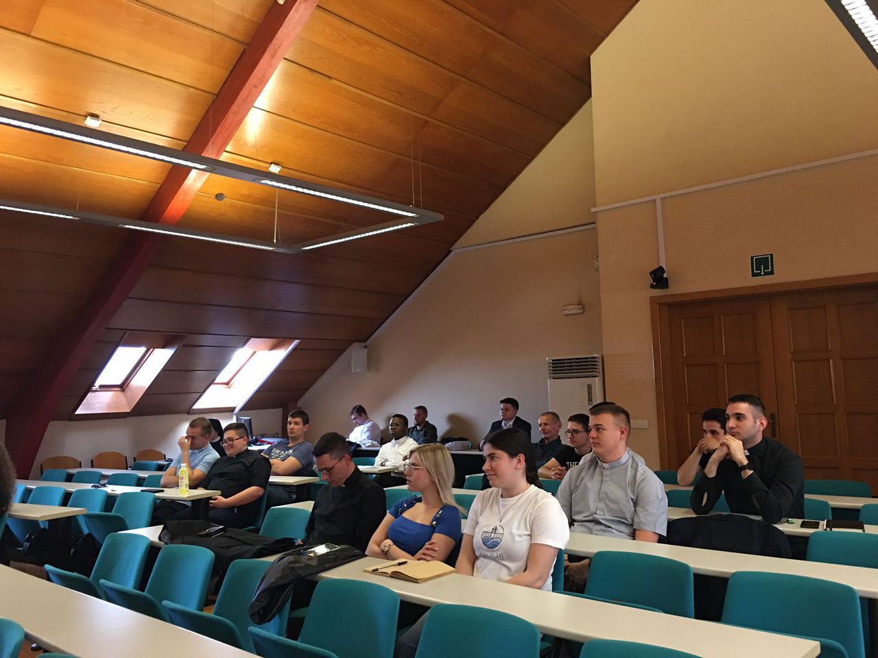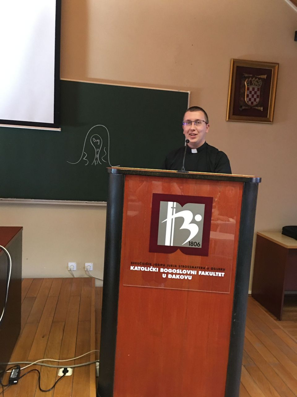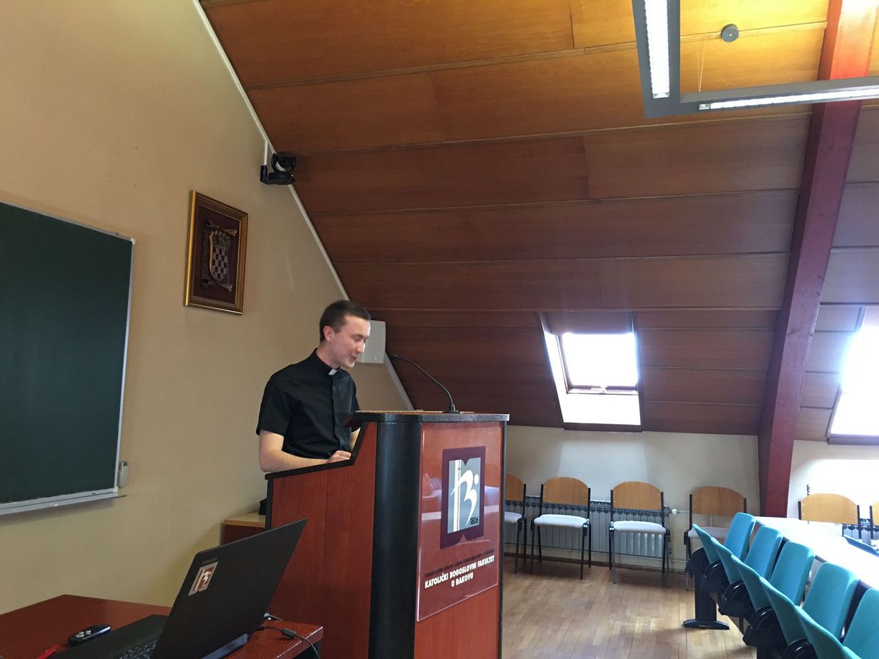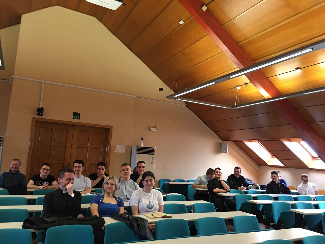 Vrhunac tjedna bio je posjet karmelu svetoga Josipa u Breznici. Na početku je sve prisutne pozdravio profesor Matezović i zahvalio sestrama na susretu. Uslijedilo je svjedočanstvo dviju sestara nakon čega su studenti imali mogućnost postavljanja pitanja i razgovora sa sestrama. Potom je uslijedila zajednička molitva Večernje i sveta misa koju je slavio profesor Matezović u koncelebraciji sa izv. prof. dr. sc. Davorom Vukovićem, v.d. prodekana Fakulteta. U svojoj se homiliji profesor Matezović osvrnuo na izričaj da Otac ljubi Sina i sve je predao u ruku njegovu. Pitajmo se što je ljubav za svakoga od nas. Je li ona samo osjećaj, emocija, nagon? Svjetovno će razumijevanje reći samo to – to je neka trenutna emocija koja dođe i prođe. Tako je ljubav iz ljudske perspektive uvijek okrenuta nama samima i dovodi do toga da volimo osobu na način posjedovanja te osobe. Ljubav iz božanske perspektive, s druge strane, biva drugačija. Otac ljubi Sina tako da daje Sinu sve, cijelu njegovu bit, cijelo njegovo božansko „Ja“. Otac daje sve, a Sin prima sve što Otac jest. U ovim uskrsnim danima, prepoznali smo u Isusu Kristu Boga koji nam iskazuje ljubav tako što nam daruje čitava sebe i sve što ima. Božanska je ljubav tako uvijek darivanje cijeloga sebe drugome. Time što Otac sve daruje Sinu, ne znači da je On ostao bez svega. Narav Božje ljubavi je takva da ona nikada ne prestaje i što se više netko daje, to više ima te ljubavi. Otac nikad ne prestaje darivati, a Sin nikada ne prestaje primati. Sin daruje Duha potpuno onima koji su pozvani širiti ljubav ovim svijetom. Ako želimo u ovome svijetu nasljedovati Krista, moramo darivati svima cijele sebe, ništa ne zadržavajući. Homiliju je profesor zaključio pozivom na molitvu za dar božanske ljubavi na ovome svijetu.