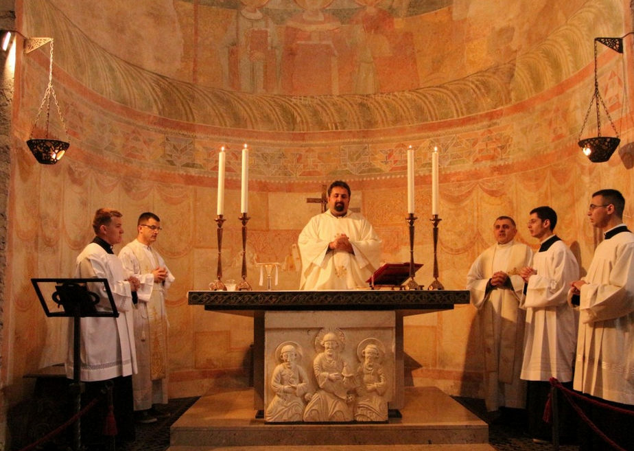Prije polaska uslijedila je molitva u studentskoj kapelici, a putem se još molilo kod Židovske bogomolje i zavjetne kapelice Gospi. Svetu misu je predvodio mons. dr. Đuro Hranić, đakovačko osječki nadbiskup u koncelebraciji s profesorima KBF-a i odgojiteljima sjemeništa. Dekan, izv. prof. dr. sc. Ivica Raguž je u svojoj homiliji poručio kako nam čitanje iz Djela apostolskih o Pavlovu govoru na Aeropagu donosi lakoću navještaja Riječi Božje. Pavao ima miran stav prema poganima te ne govori odmah o Kristu. Govori im kako štuju nepoznatog boga, a onda im predstavlja vjeru u Trojedinoga Boga. Kršćanska vjera uvijek računa s križem, a Grci ne prihvaćaju da jedna osoba predstavlja vjeru. Kršćanski Bog je konkretni Bog koji ulazi u svijet. BDM je majka konkretnog Boga koji je srastao s čovjekom. Pozvani smo štujući Mariju i sami srastati s Bogom. Krist nam govori o Duhu kao Duhu Istine kojeg je potrebno prihvatiti. Bez ljubavi nema istine ni pravog razumijevanja. Marija je ljubavlju rasla u spoznaji i sama bila podučavana. Ako se njoj utječemo primamo pravu spoznaju jer bez nje nema teologije koja je prožeta strašću. Duh je onaj koji sluša i govori. Profesor Raguž je na kraju poručio kako teolozi trebaju hrabro i smjelo navješćivati Boga te se uvijek iznova utjecati BDM i otvoriti se djelovanju Duha Svetoga. Susret je završen zajedničkim ručkom i druženjem.