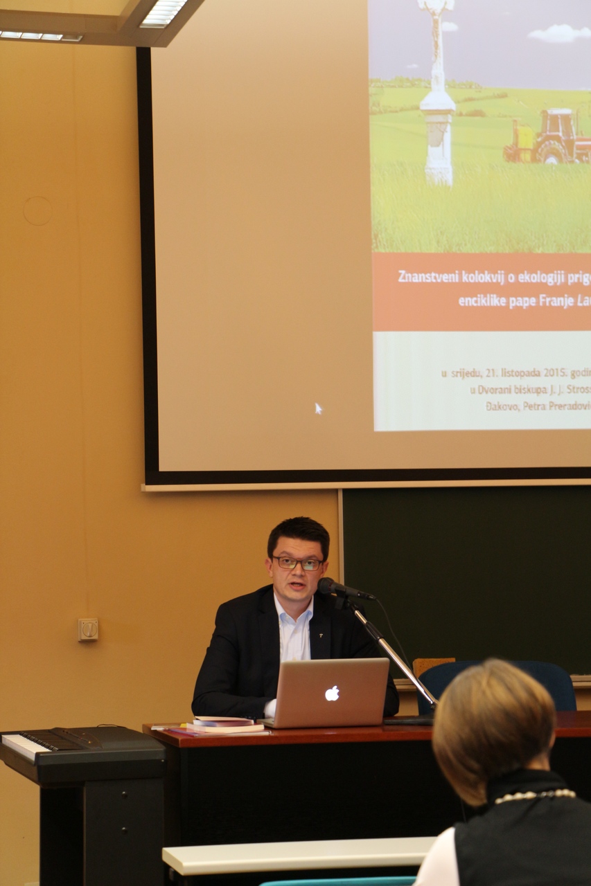 U srijedu, 21. listopada 2015. godine u Dvorani biskupa J. J. Strossmayera u Đakovu održan je znanstveni kolokvij o ekologiji prigodom objavljivanja enciklike pape Franje “Laudato si”. Prije izlaganja najavljenih predavača dekan Katoličkog Bogoslovnog Fakulteta u Đakovu izv. prof. dr. sc. Ivica Raguž uputio je pozdrav svima nazočnima. Istaknuto je da je ovaj znanstveni kolokvij prvi u nizu ove akademske godine, te prvi u Hrvatskoj koji je posvećen enciklici Laudato si. Ekologija je pojam koji je u monaškim zajednicama izrazito važan, a cilj ovog kolokvija je da se ta ideja proširi i na svakoga od nas.